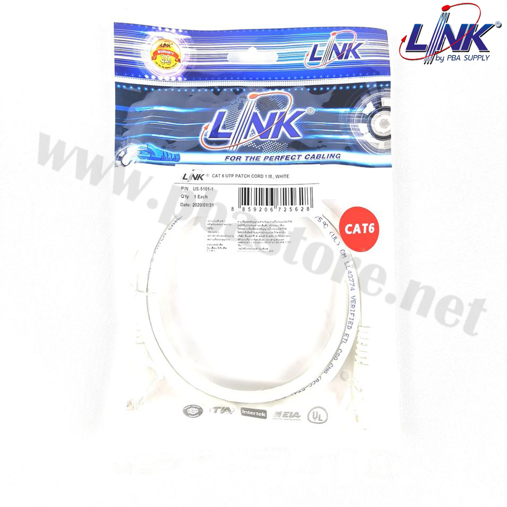 สายแลนแบบสำเร็จรูป Patch Cord CAT6 1M /Cable WHITE ยี่ห้อLINK รุ่น US-5101LZ-1 ราคา 40.00 .-
