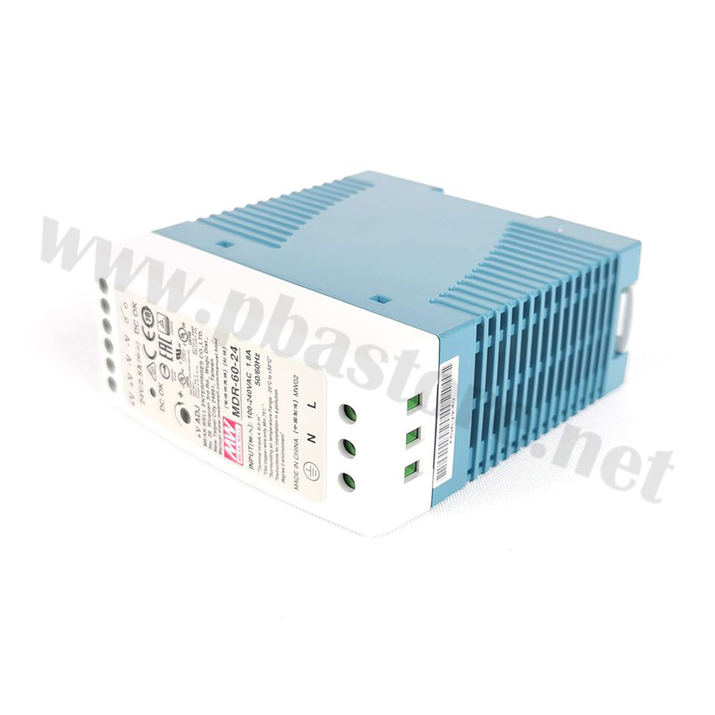 Industrial Din Rail Power Supply เป็นอุปกรณ์จ่ายไฟที่นิยมใช้กันในอุตสาหกรรมเพราะเป็นอุปกรณ์ที่ทนความร้อนและอุณหภูมิติดลบสูง โดยใช้ประกอบร่วมด้วยกับ รางปีกนก (Din Rail) Power supply รุ่น MDR-60-24 จะเป็นรุ่นจ่ายไฟออก 24Vdc at 2.5A (60W) ซึ่งมีช่อง DC Output 2ชุด สามารถเลือกจ้ำสายเข้าหากัน
