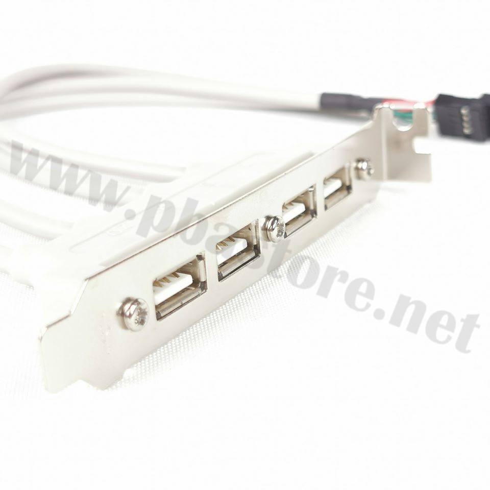 อะแดปเตอร์หัวต่อ USB 2.0 ตัวเมียกับเมนบอร์ดนี้มีการเชื่อมต่อหัวต่อ USB แบบ 9 พินรวมถึงพอร์ต USB A (ตัวเมีย) 4 พอร์ต