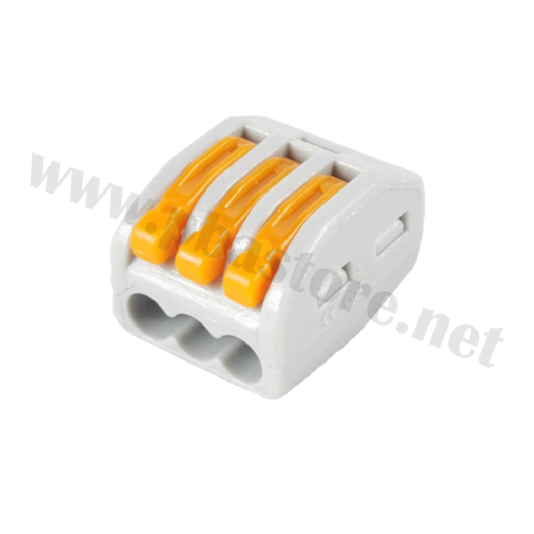 ขั้วสำหรับต่อตรงสายไฟ PCT-213 (SPL) แบบ 3 ช่อง สำหรับใช้ต่อตรงสายไฟ 3 เส้นเข้าด้วยกัน รองรับขนาดสาย 0.5-4mm² PCT-213