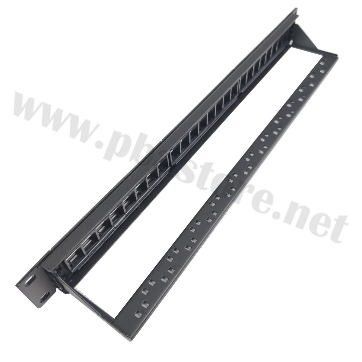 PATCH PANEL SLOT SPACE Modular Type 24 Port 1U ขนาด 19 นิ้ว แผงกระจายสายมีเหล็กจัดสายและสามารถติดป้ายชื่อได้