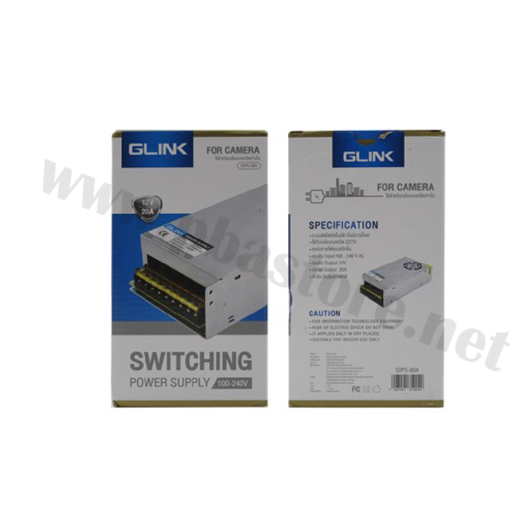 Switching Power Supply 12V 20A GLINK  รุ่น GIPS-004 ใช้กับกล้องวงจรปิด CCTV แหล่งจ่ายไฟแบบสวิทซิ่ง มีระบบตัดไฟอัตโนมัติ เมื่อมีการช็อต