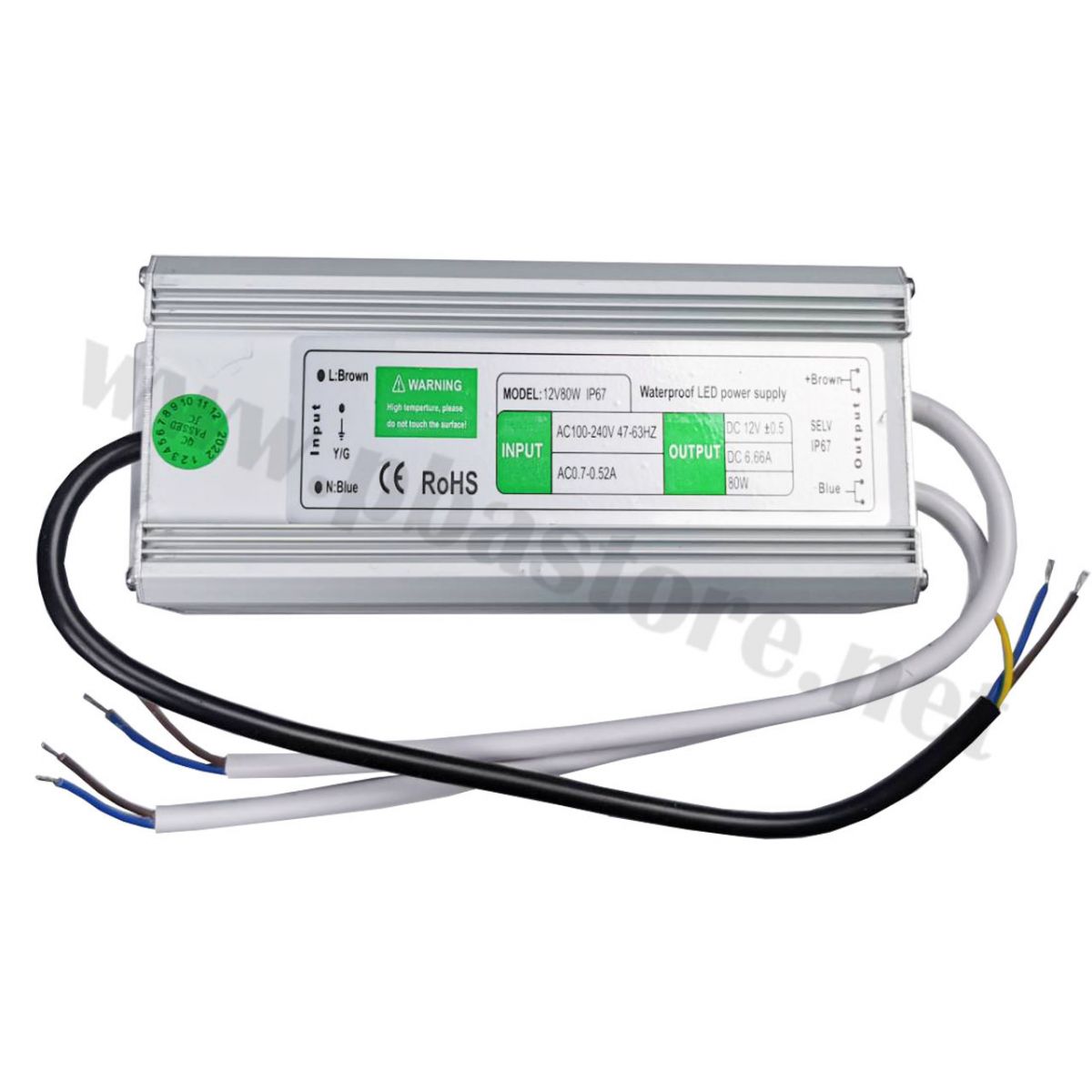 Switching Power Supply หม้อแปลงกันน้ำ IP67 12V 6.6A 80W แหล่งจ่ายไฟกระแสสลับแบบกันน้ำ แรงดันไฟขาออก 12V กระแสไฟขาออก 6.6A กำลังไฟขาออกสูงสุด 80W