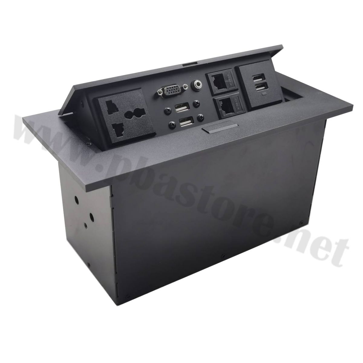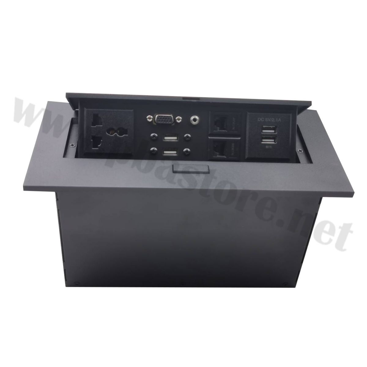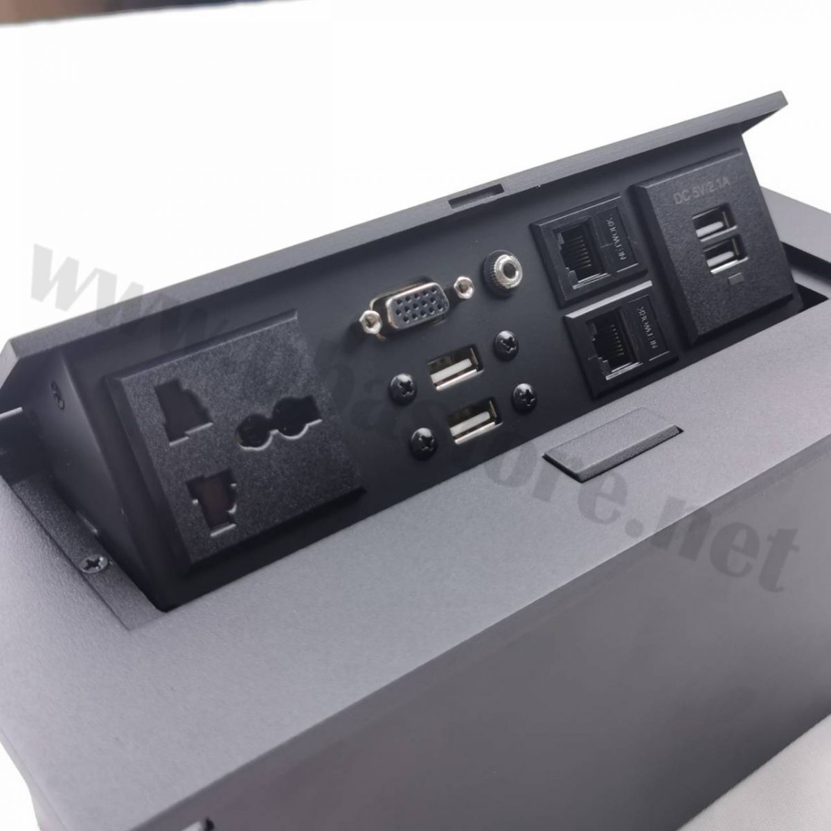 กล่องปลั๊กไฟฝังโต๊ะสำนักงาน แบบมีฝาเปิด-ปิด 1 US Plug/4USB/1VGA/2LAN ใช้สำหรับฝั่งบนโต๊ะทำงาน โต๊ะประชุม โต๊ะสำนักงาน