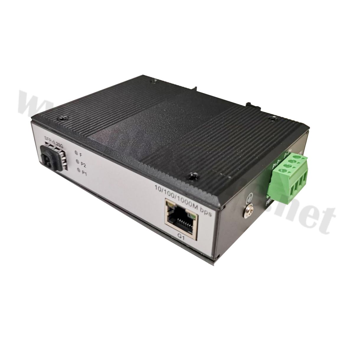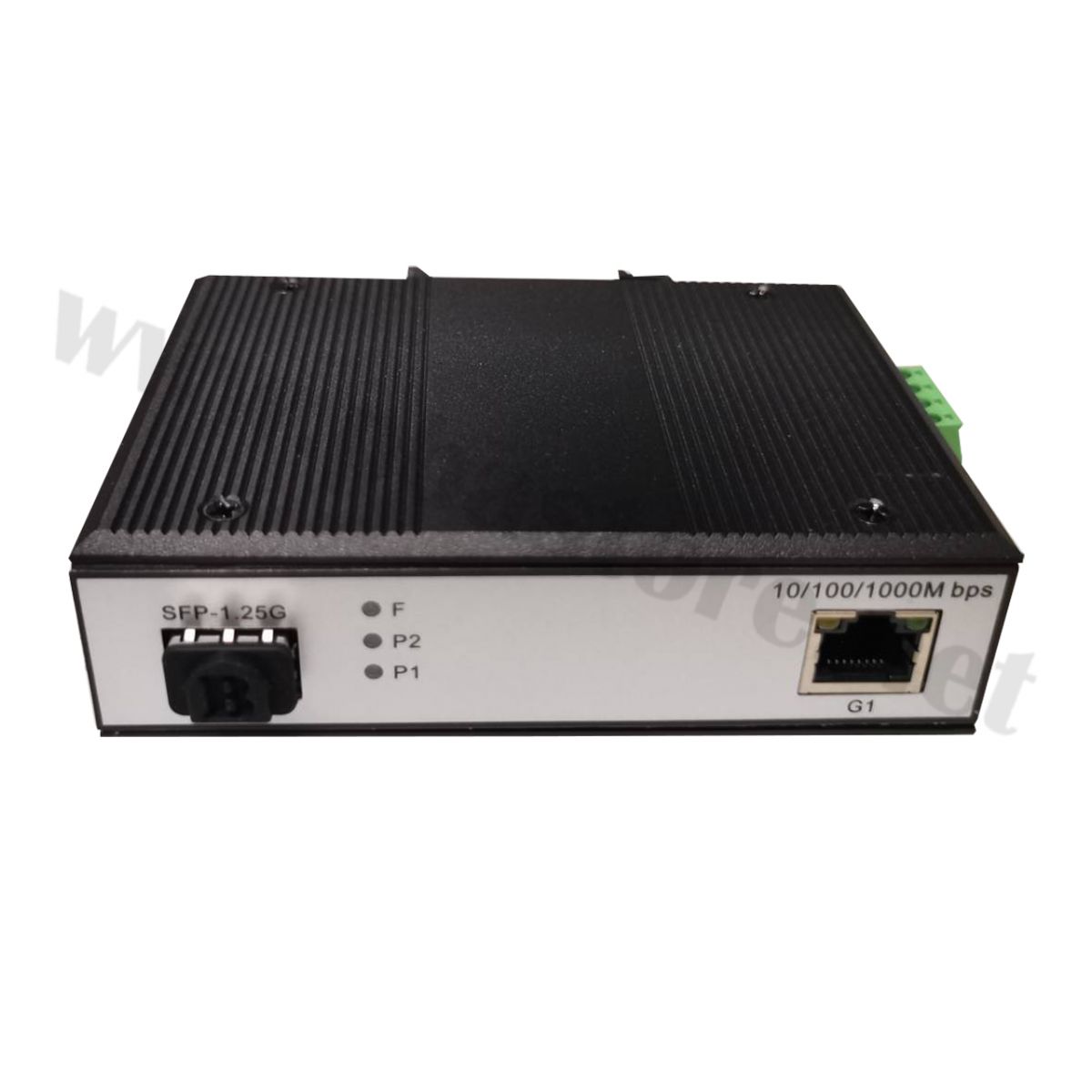 GIGABIT INDUSTRIAL SFP (1GE LAN +1SFP) 10/100/1000M เป็นอุปกรณ์เชื่อมต่อเน็ตเวิร์คเพื่อกระจายการเชื่อมต่อของอุปกรณ์ รองรับความเร็วสูงสุด Data Transfer Rate 1000Mbps.และสามารถเชื่อมต่อไฟเบอร์ออฟติก ผ่าน SFP module ได้