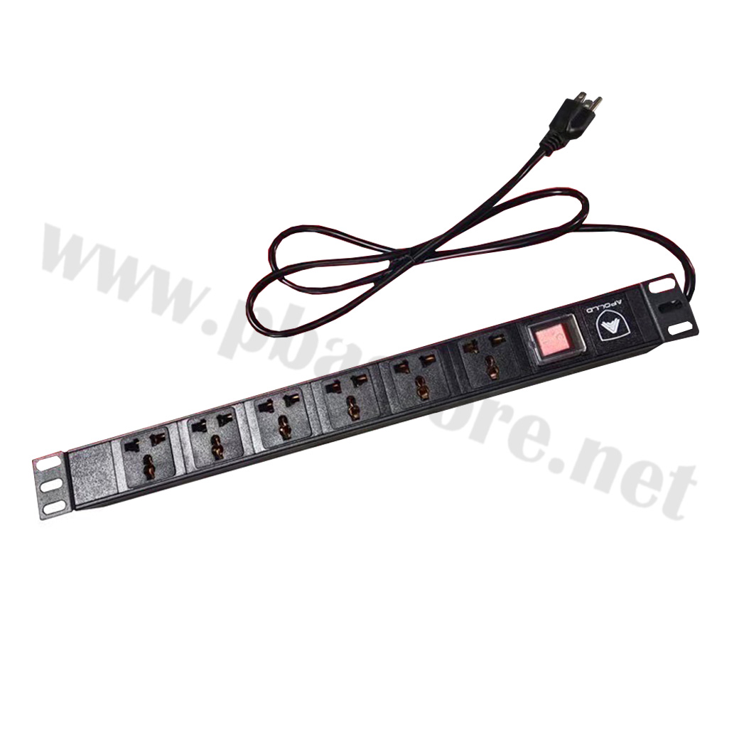 ปลั๊ก RACK PDU 6 ช่อง WITH BREAKER สีดำ APOLLO รุ่น APDU-01 สำหรับติดตั้งในตู้แร็ค Server เป็นปลั๊กไฟแบบ 3 ขา L, N, G พร้อมสวิทซ์เปิด-ปิด