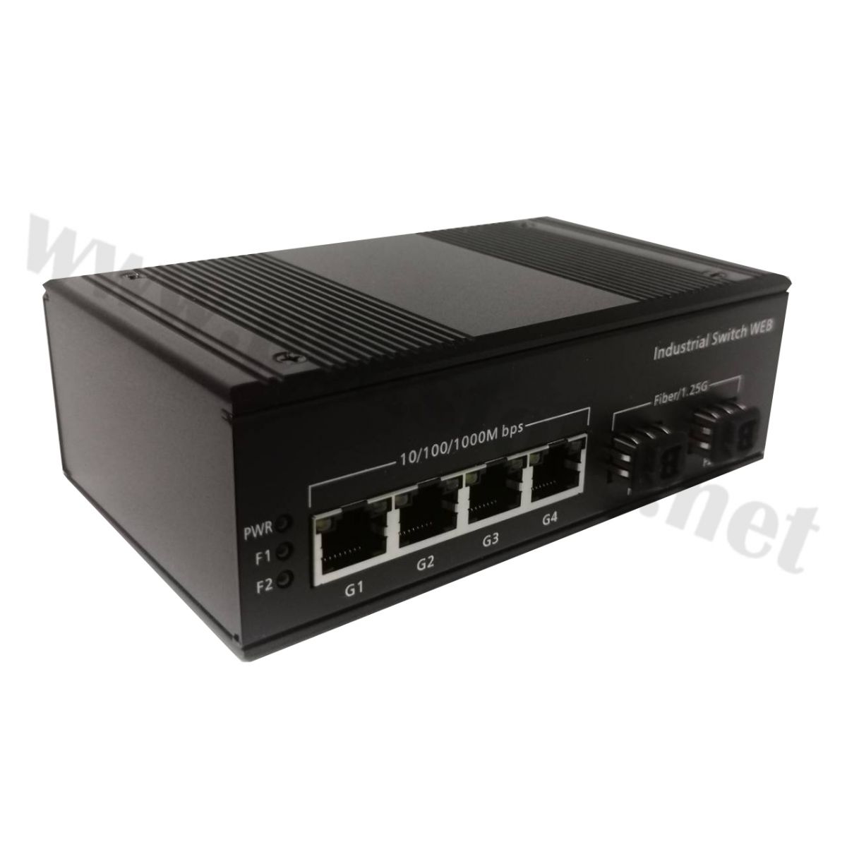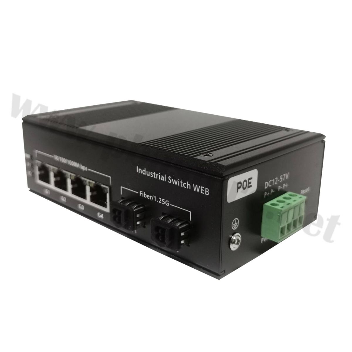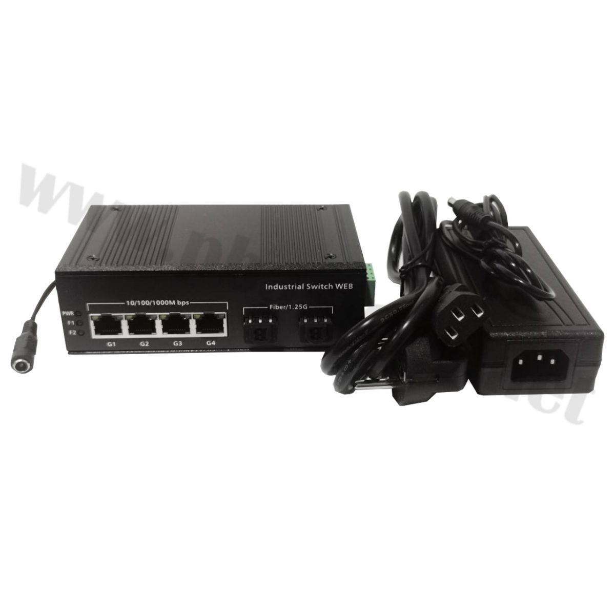 Industrial Switch POE 4 Port+ 2 SFP Gigabit WEB Managed (with power adapter DC 52V) รองรับการจัดการผ่านเว็บ และสามารถใช้กับอุปกรณ์ PoE ที่หลากหลาย