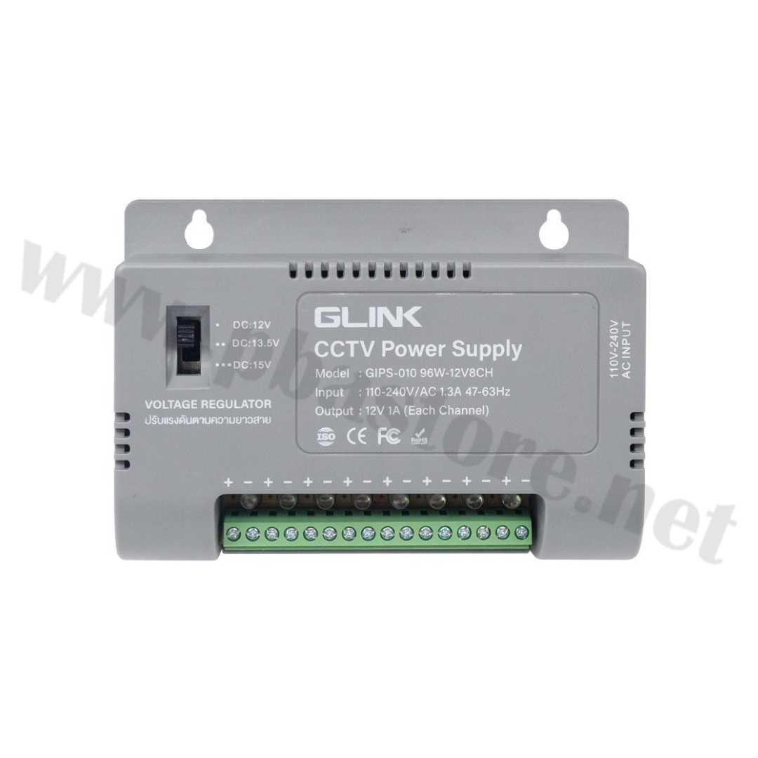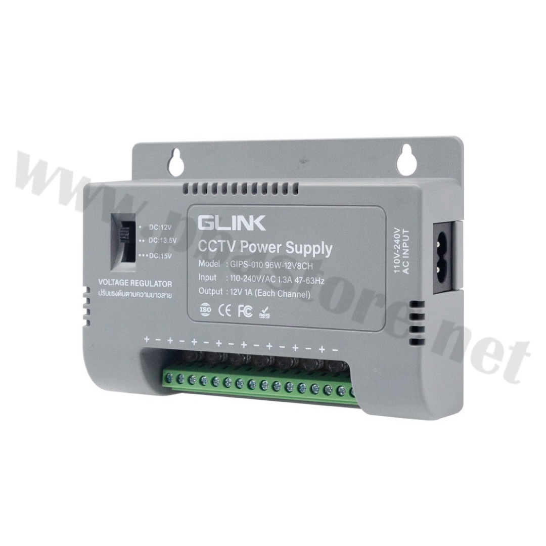 Switching Power Supply 8 ช่อง 12V 8A GLINK รุ่น GIPS-010 เป็นอุปกรณ์แปลงแรงดันไฟฟ้าสำหรับกล้องวงจรปิด ส่งพลังงานออกได้หลายช่อง ราคา 350.00 .-