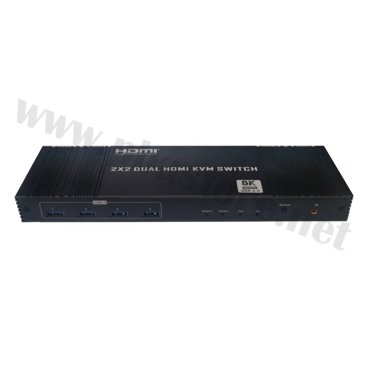 2x2 DUAL HDMI + USB (Support 3.0) KVM SWITCH 8K 60Hz รุ่น S-KVM-8K-202 เป็นอุปกรณ์สลับใช้งานคอมพิวเตอร์ 2 เครื่องและจอภาพ 2 จอ
