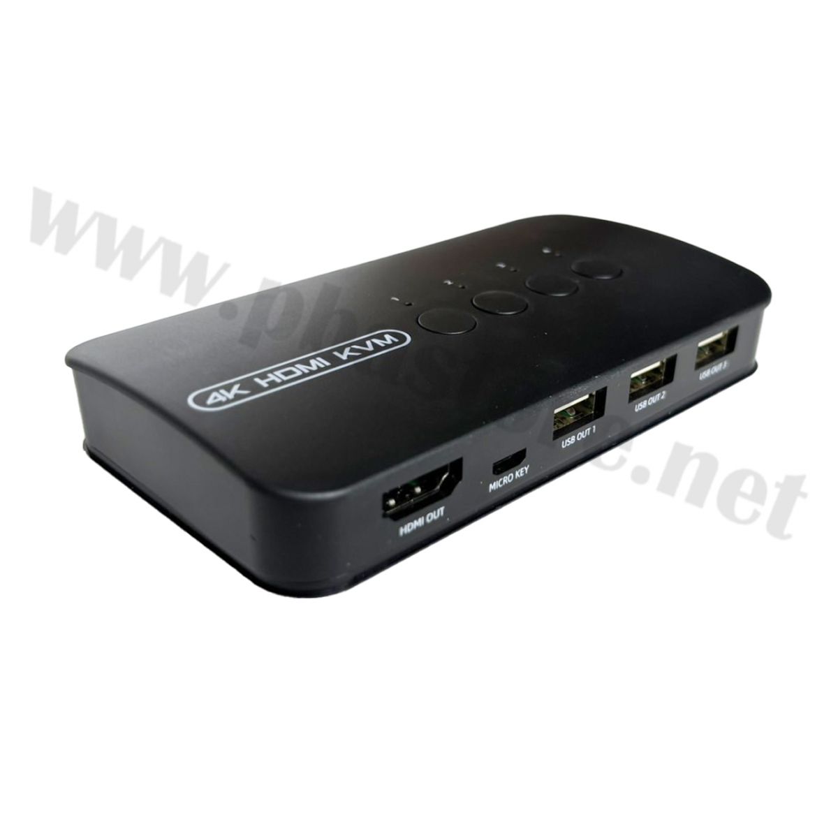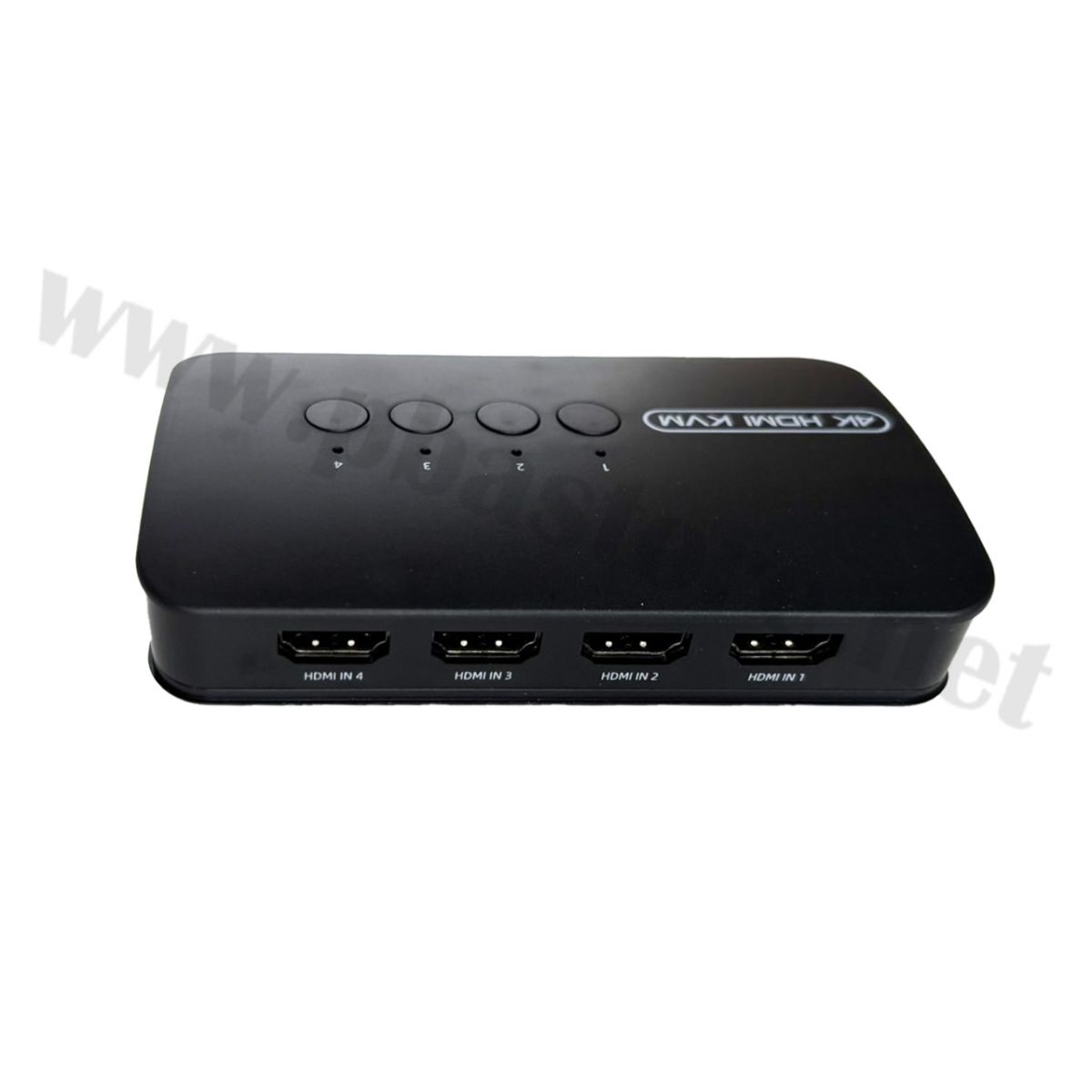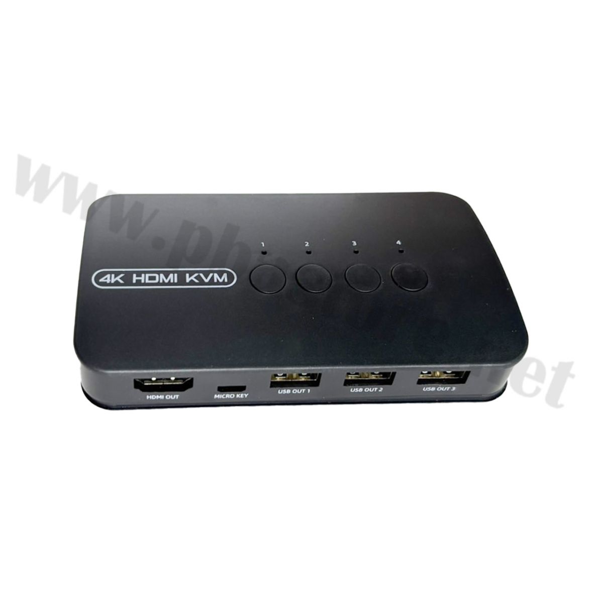 KVM Switch 4 PORT HDMI 4K 30Hz + USB Manual (พร้อมสาย) รุ่น HK401 เป็นสวิตช์ KVM ที่รองรับวิดีโอและเสียงความคมชัดสูงระดับ 4K
