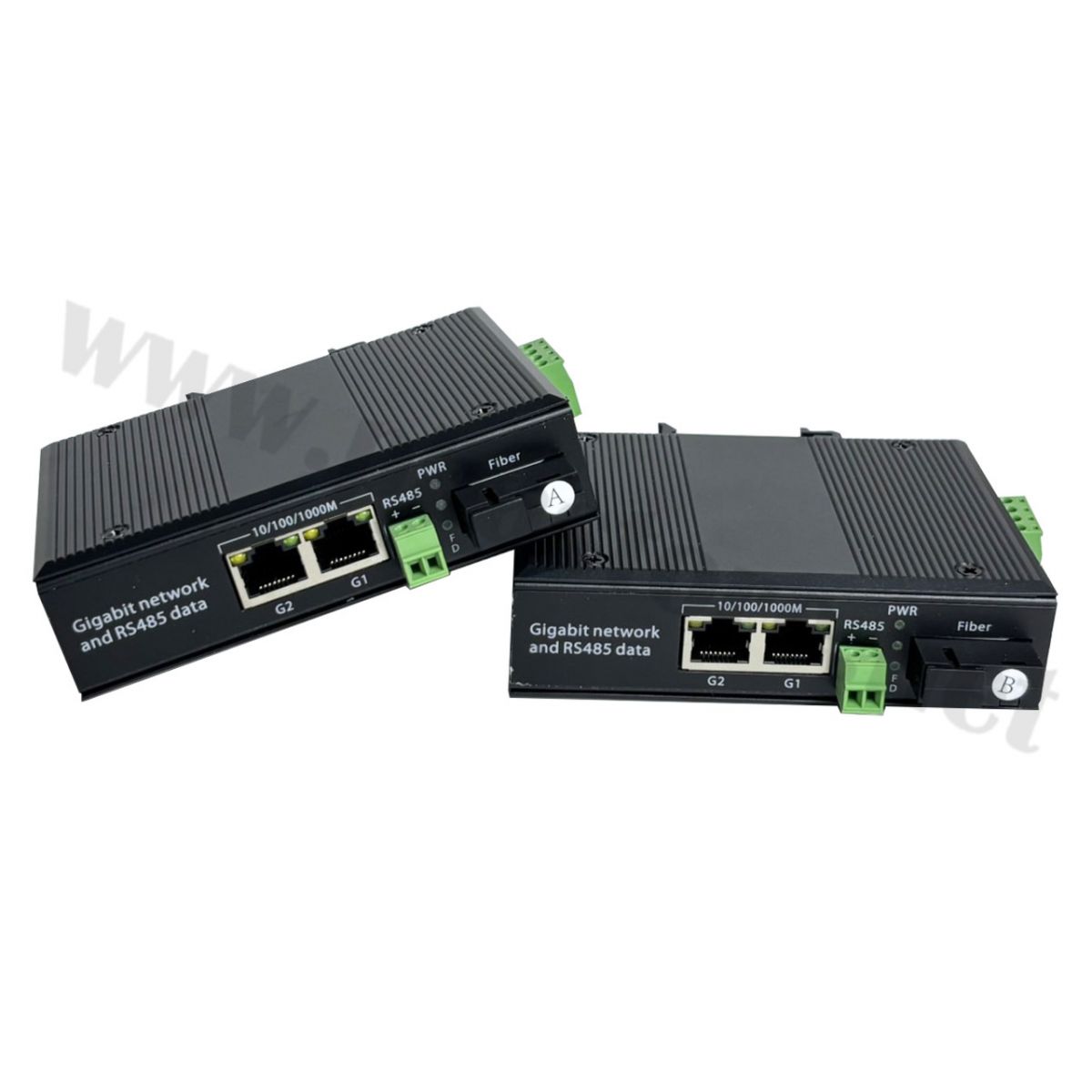 Industrial Media Switch 2 Port with RS485 (2-in-1) 10/100/1000M 20KM (With Power Adapter) เป็นอุปกรณ์สวิตช์สื่อสารข้อมูลที่รวมฟังก์ชันทั้งการส่งข้อมูลผ่านไฟเบอร์ออฟติกและการเชื่อมต่อ RS485 ไว้ในเครื่องเดียว