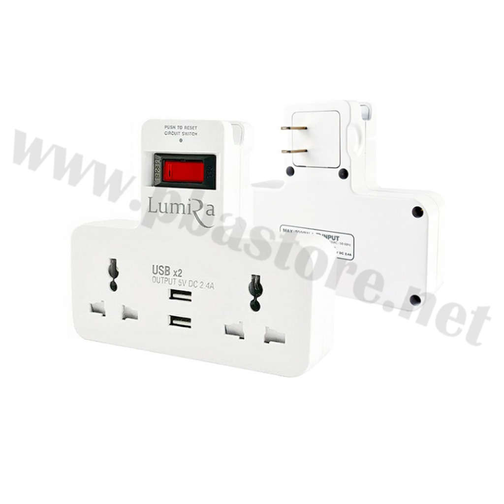 อะแดปเตอร์ปลั๊กไฟ 2 เต้ารับ + USB 2 ช่อง มีสวิตช์เปิดปิด สีขาวย LUMIRA รุ่น LP-004 มาพร้อมเต้ารับไฟฟ้า 2 ช่อง และพอร์ตชาร์จ USB 2 ช่อง รองรับการใช้งานกับอุปกรณ์ไฟฟ้าและอุปกรณ์อิเล็กทรอนิกส์ทั่วไป