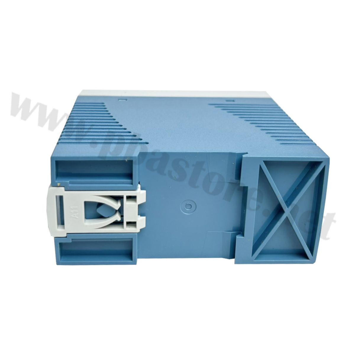 - ติดตั้งพาวเวอร์ซัพพลาย บนราง DIN มาตรฐาน (TS-35/7.5 หรือ TS-35/15) ภายในตู้ควบคุมหรือแผงไฟฟ้า โดยให้มีช่องระบายอากาศรอบตัวเครื่องอย่างน้อย 2–3 ซม. เพื่อให้อากาศถ่ายเทสะดวก