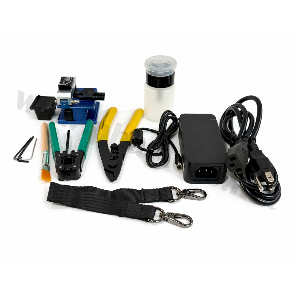 เครื่องสไปรท์สายไฟเบอร์ออฟติก Fiber fusion splicer Full set รุ่น AI-5 PRO And Accessories มาพร้อมอุปกรณ์ครบชุด พร้อมใช้งานทันที เหมาะสำหรับงานติดตั้งและซ่อมบำรุงระบบไฟเบอร์ออฟติกทั้งภาคสนามและงานวิศวกรรม ตัวเครื่องออกแบบให้ใช้งานง่าย