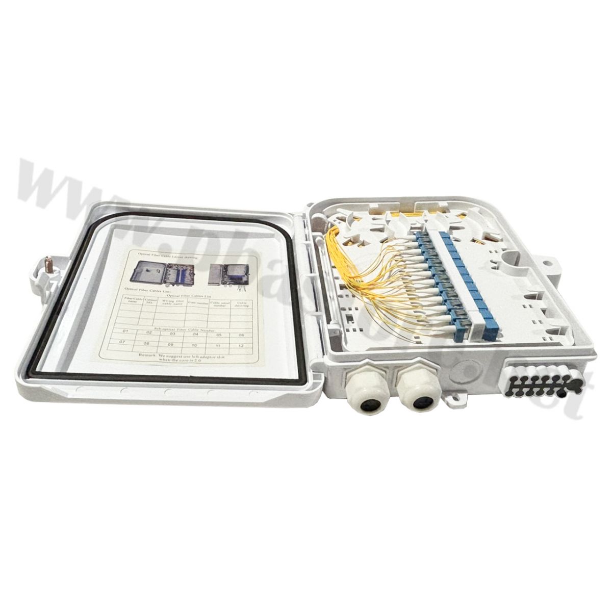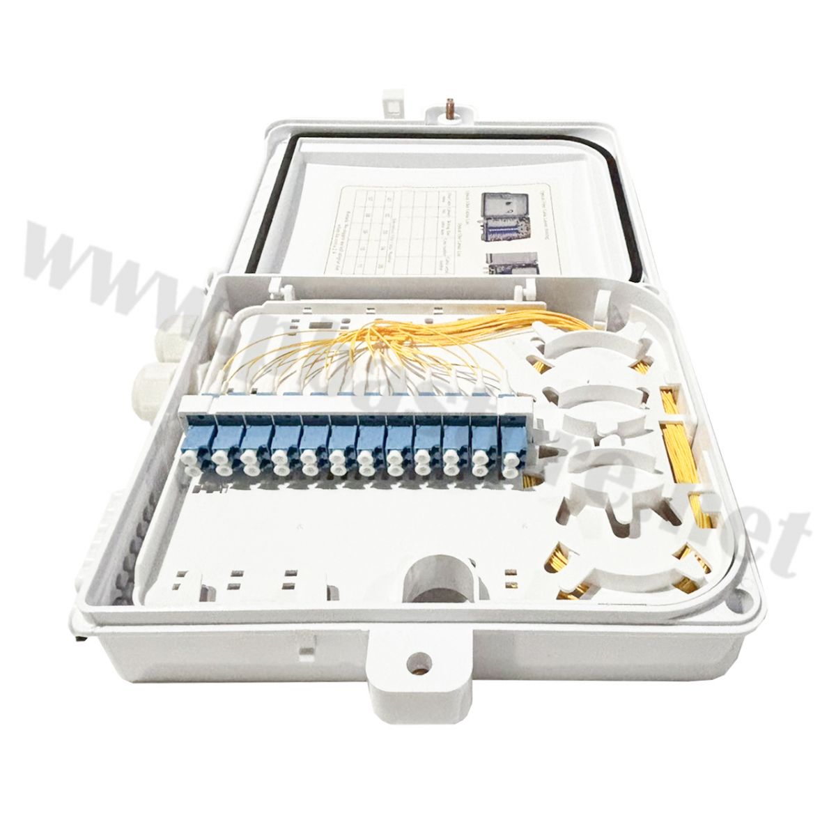 Tags: กล่องพักสายไฟเบอร์, Fiber Distribution Box, 12 Core, 24 Core, LC/UPC, Hyperlink, Outdoor Box, กันน้ำ IP65, อุปกรณ์ไฟเบอร์ออฟติก, Pigtail, Adapter LC, จุดเชื่อมต่อสายไฟเบอร์, งานระบบเน็ตเวิร์ก, สไปรท์สายไฟเบอร์