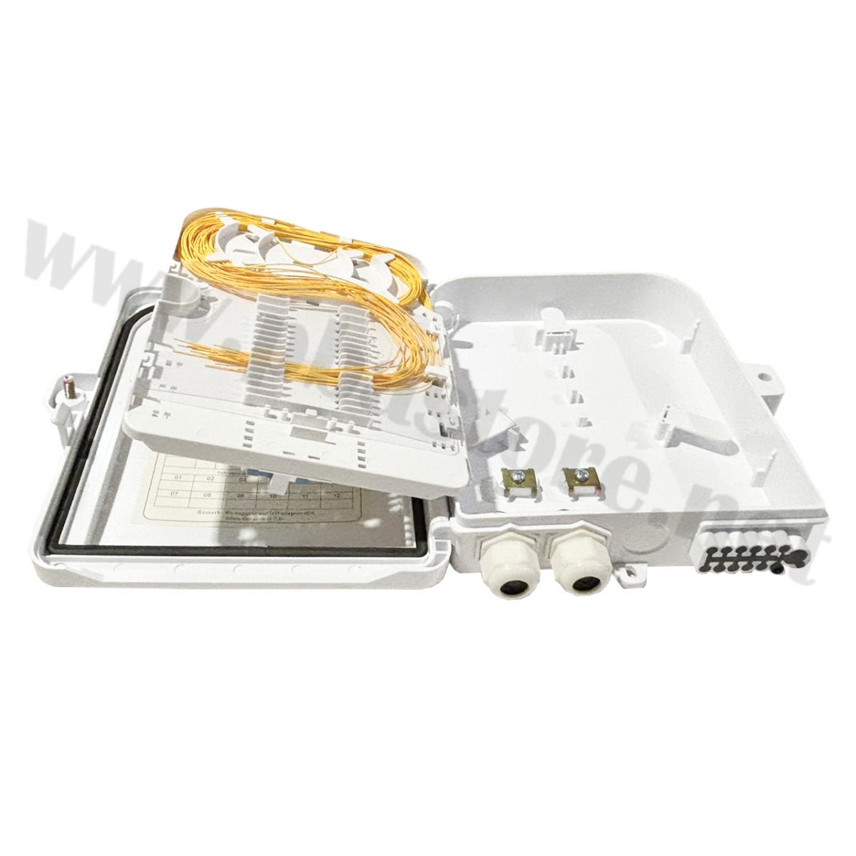 - การจัดเก็บสาย: มีถาดสไปรท์ (Splice Tray) ภายในสำหรับเก็บรอยสไปร์ทและ Pigtail ให้เป็นระเบียบ พร้อมวงแหวนสำหรับจัดเก็บรัศมีโค้งของสาย (Bending Radius)