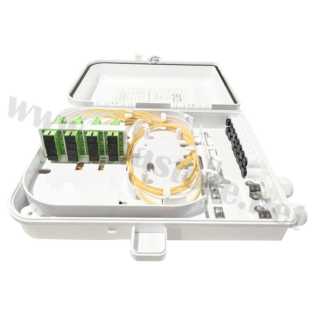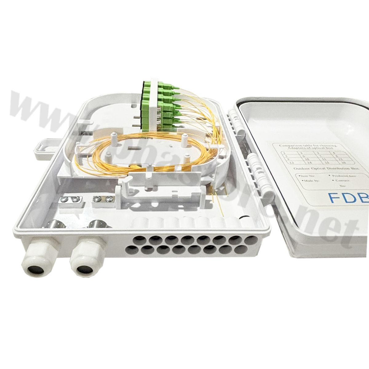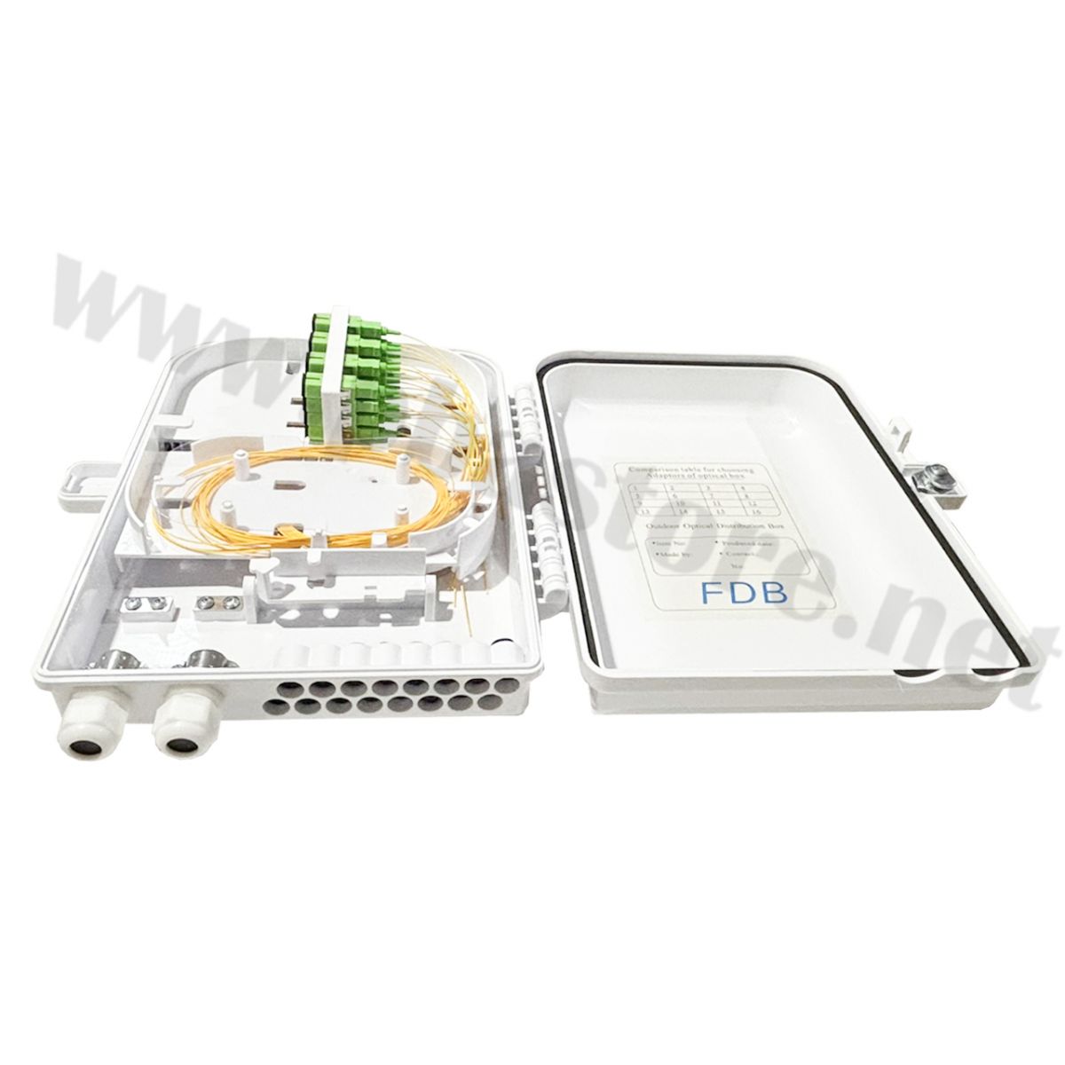 Tags: กล่องไฟเบอร์ออฟติก, FDB 16 Core, SC/APC, Fiber Distribution Box, FTTH, อุปกรณ์เน็ตเวิร์ค, กล่องกันน้ำภายนอก, สไปรท์สายไฟเบอร์, Pigtail, Adapter SC, ระบบสื่อสาร, ตู้พักสายไฟเบอร์, งานระบบ CATV, โครงข่ายอินเทอร์เน็ต, หัวเขียว SC APC