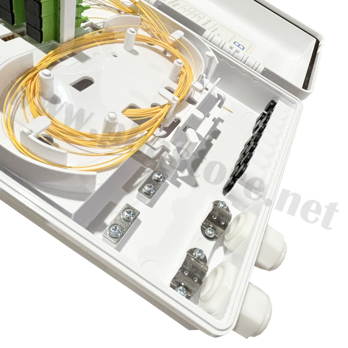 - ถาดจัดการสาย: มีถาดสไปรท์ (Splice Tray) ในตัว จัดระเบียบสาย pigtail และการม้วนเก็บสายได้ง่าย