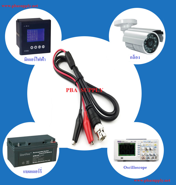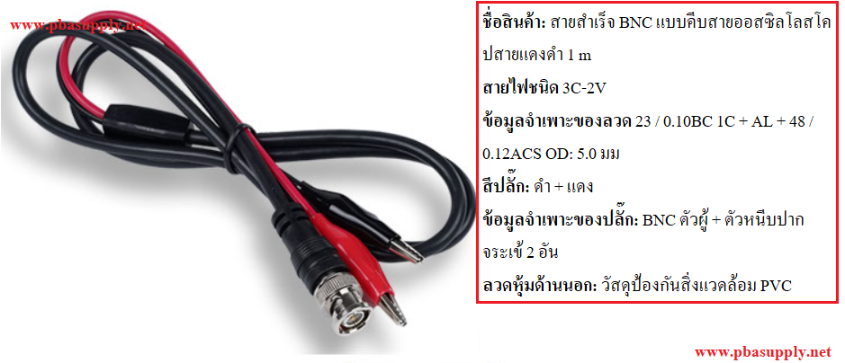 สายสำเร็จหัวBNC แบบคีบออสซิลโลสโคปสายแดงดำ 1 เมตร - Function gen probe 10MHz ราคา 50.00 .-