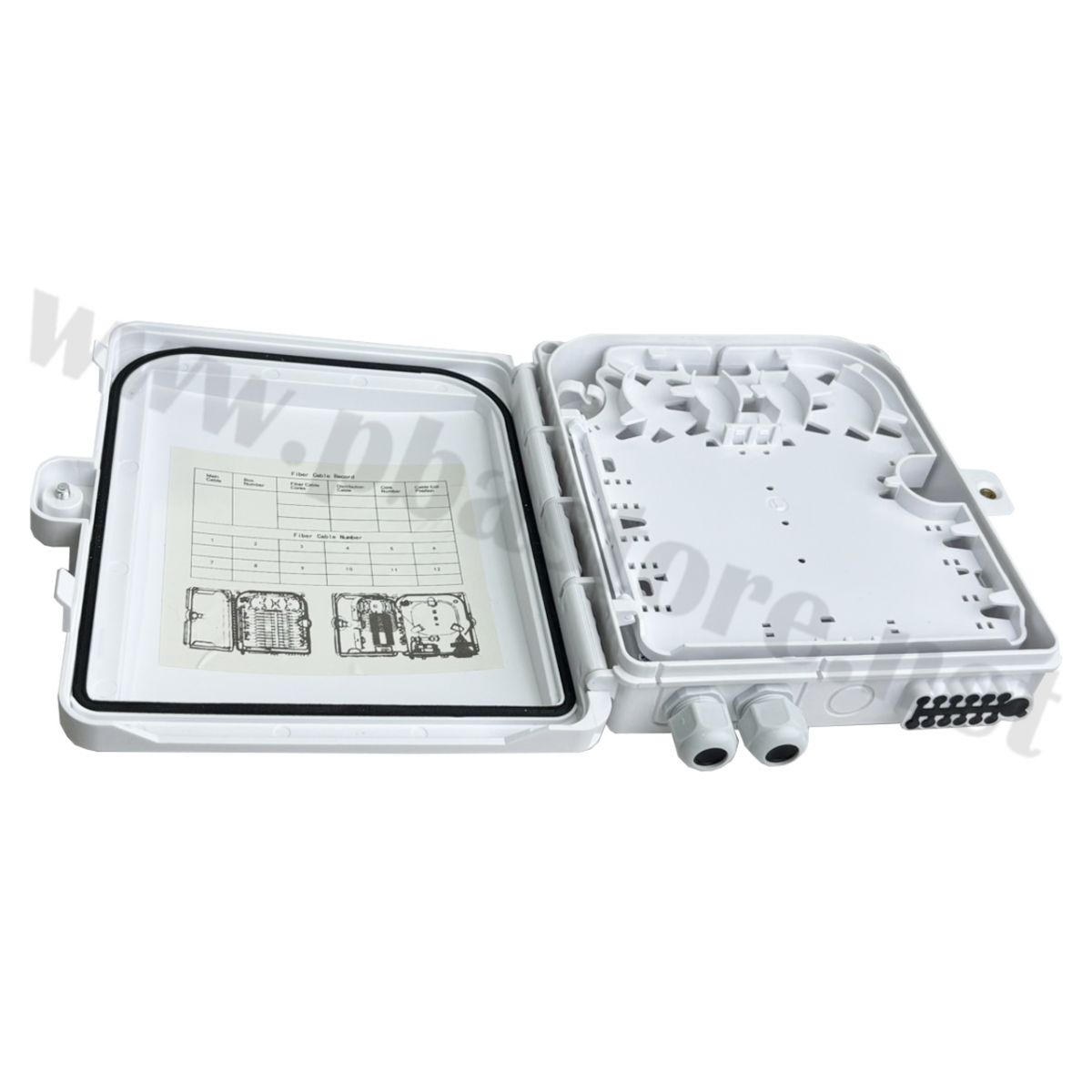 กล่องเก็บสายไฟเบอร์ 12 Core Distribution SC Adapter 12 ช่อง Box Outdoor กันน้ำ ออกแบบมาสำหรับงานติดตั้งภายนอกอาคาร (Outdoor) โดยเฉพาะ ตัวกล่องผลิตจากวัสดุคุณภาพสูง แข็งแรง ทนแดด ทนฝน และป้องกันน้ำได้ดี