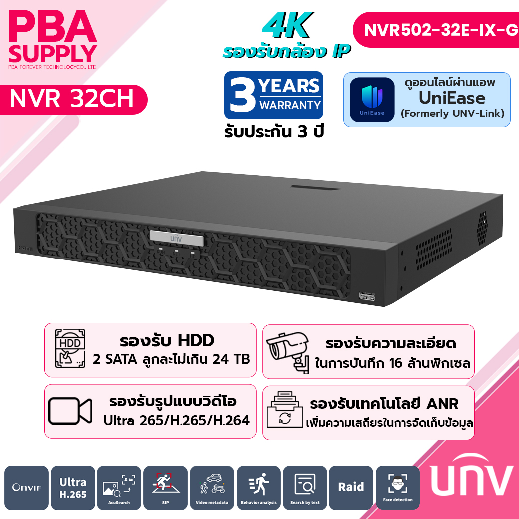 เครื่องบันทึกภาพ 32CH 2HDD Network Video Recorder UNIVIEW รุ่น NVR502-32E-IX-G รองรับกล้อง IP ได้สูงสุด 32 ช่อง