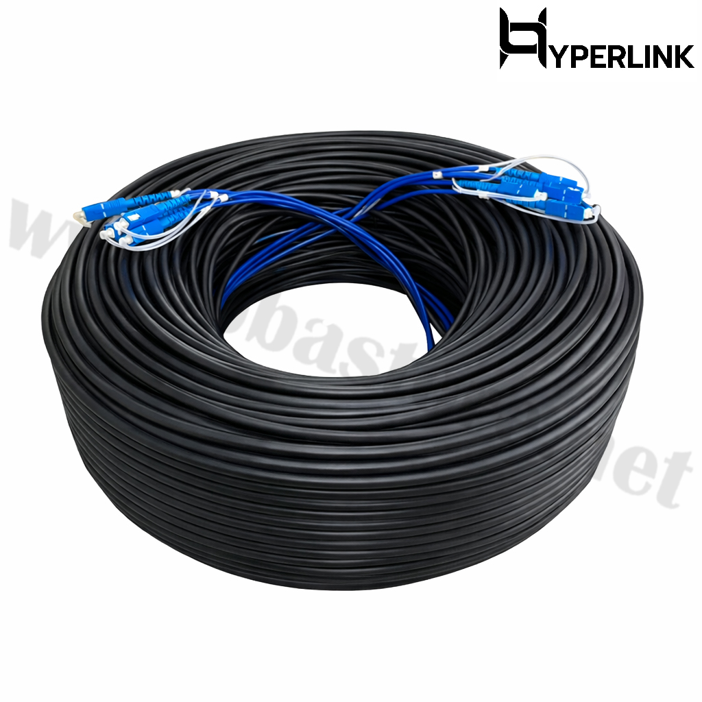 สายสำเร็จไฟเบอร์ออฟติกกลม หุ้มเกราะ (Armored) กันกระรอก SC/UPC-SC/UPC 4core SM 100M ออกแบบมาสำหรับงานติดตั้งภายนอกและภายในอาคารที่ต้องการความทนทานสูง ป้องกันการกัดแทะจากสัตว์ เช่น กระรอก หรือหนู ภายในเป็นไฟเบอร์แบบ Single Mode (SM) จำนวน 4 Core