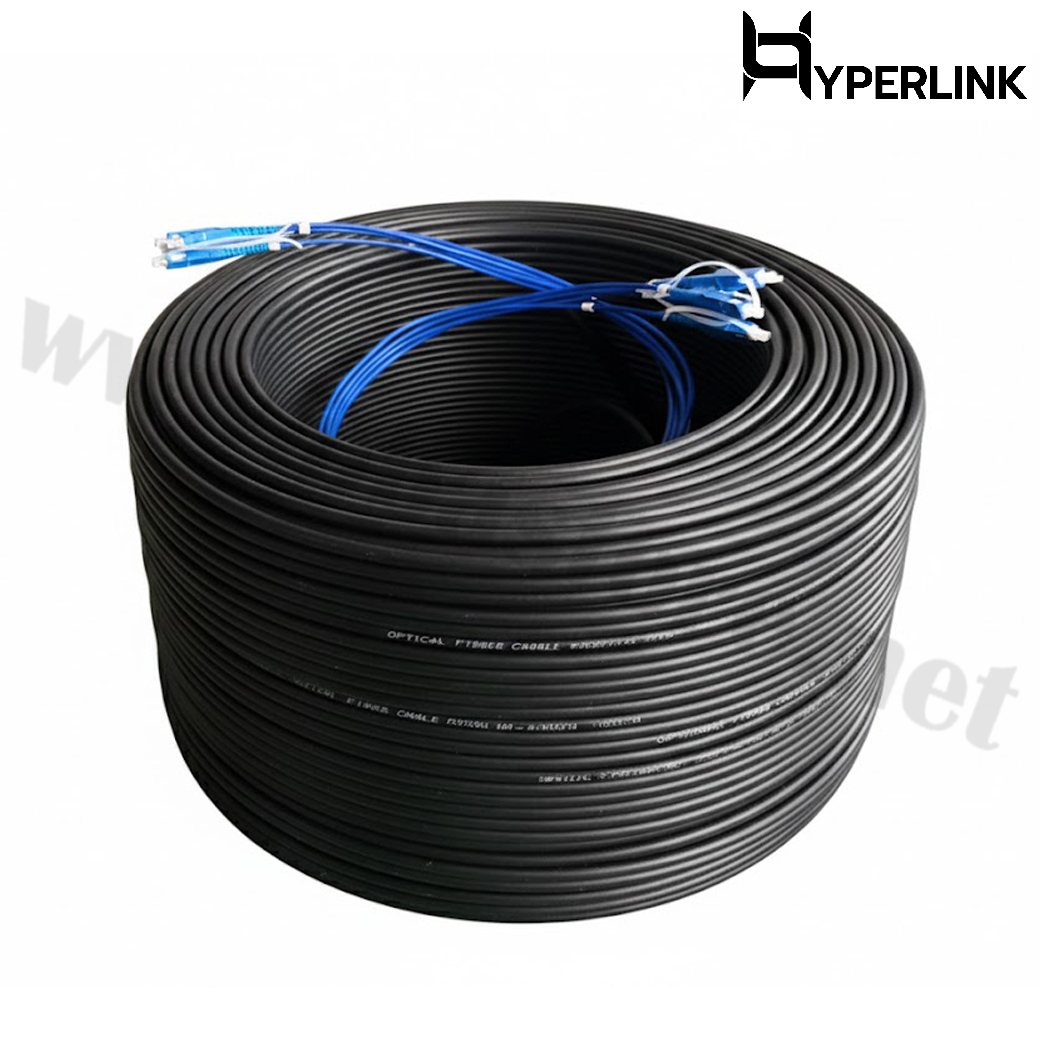สายสำเร็จไฟเบอร์ออฟติกกลม หุ้มเกราะ (Armored) กันกระรอก LC/UPC-LC/UPC 4core SM 300M รองรับการใช้งานภายนอกอาคารและพื้นที่เสี่ยงต่อการกัดแทะจากสัตว์ เช่น กระรอกหรือหนู ภายในเป็นสาย Single Mode (SM) จำนวน 4 Core