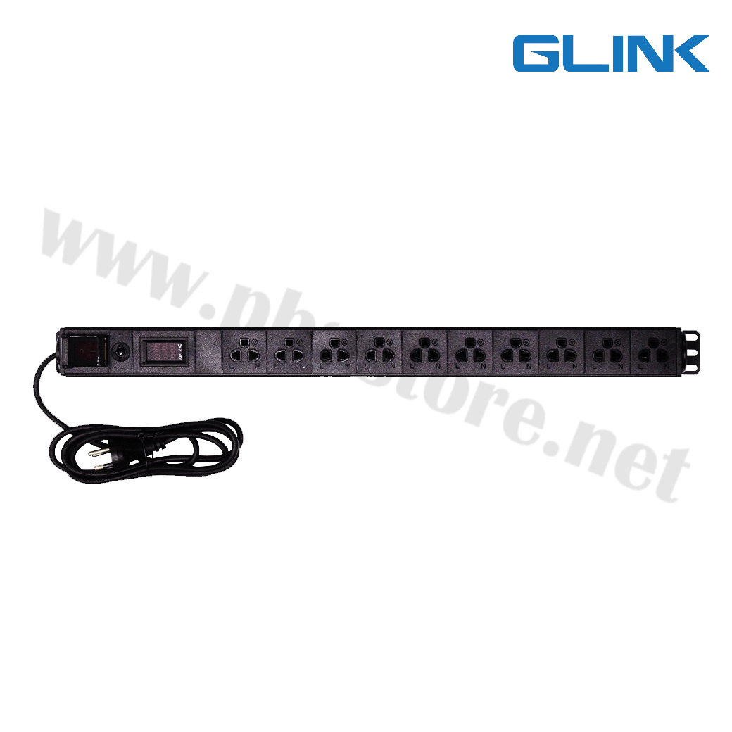ปลั๊ก Rack 12 ช่อง Glink รุ่น PDU-06 สำหรับติดตั้งในตู้แร็ค เป็นปลั๊กไฟแบบ 3 ขา พร้อมสวิทซ์เปิด-ปิด