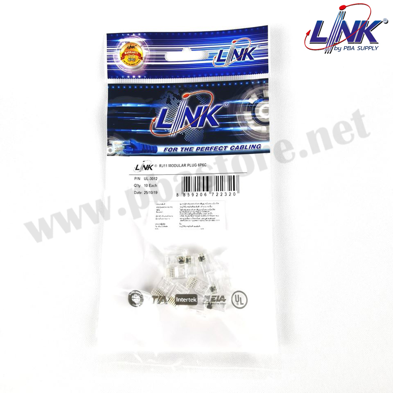หัวโทรศัพท์RJ11 6Pin/6Core Telephone PLUG(ตัวผู้โทรศัพท์ 6 ขา) ยี่ห้อLINK รุ่นUL-3012 ราคา 46.00 .-