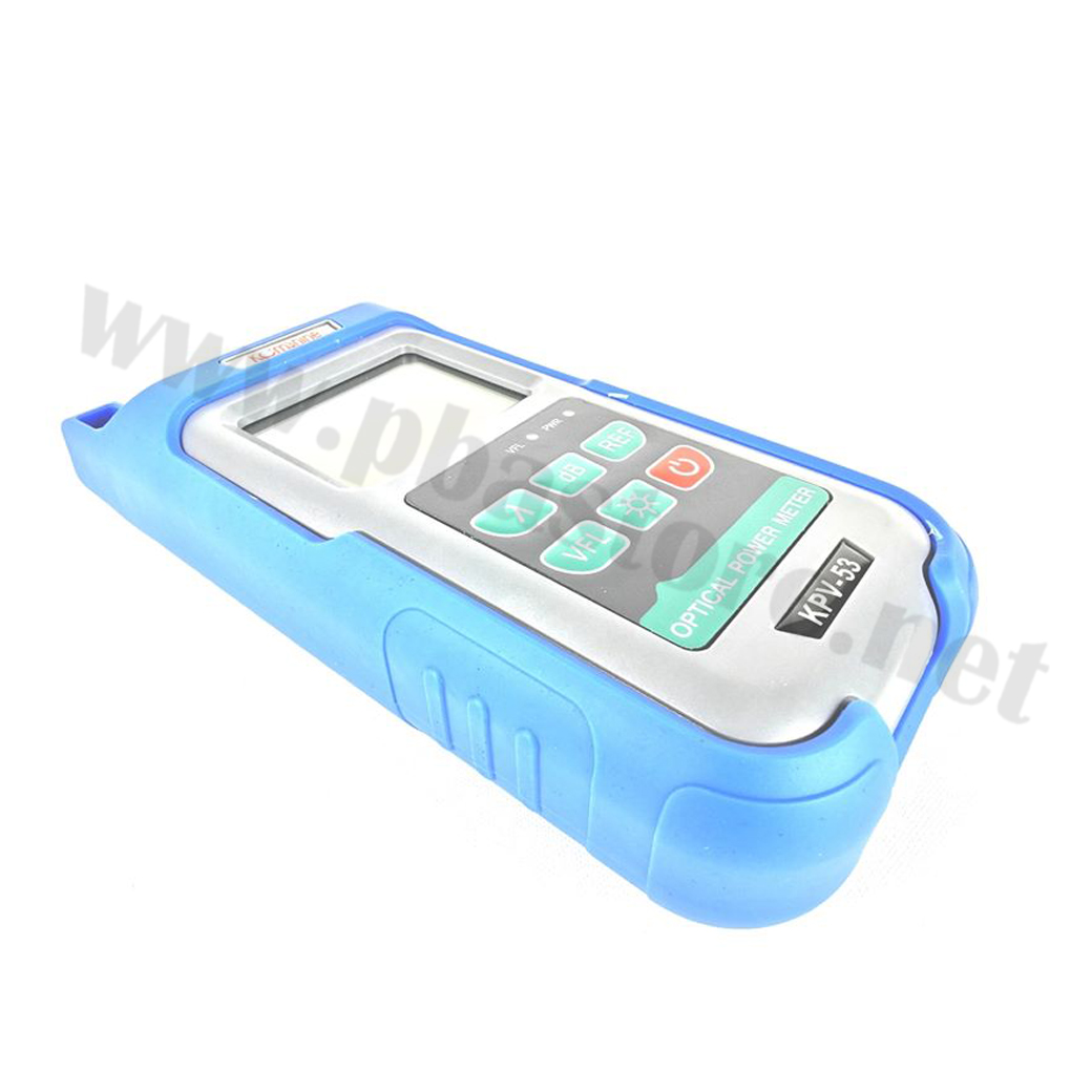 Power Meter KPV-53 มีRed Light 10mWในตัว อุปกรณ์สำหรับทดสอบค่าความเข้มของแสง, วัดค่าความแรงของสัญญาณแสงที่ปล่อยมาจากต้นทาง หลังจากเข้าหัวไฟเบอร์ออฟติกเสร็จแล้ว ใช้ตัวเครื่องวัดจะแสดงหน่วยวัดค่าออกมาเป็น -dB การวัดค่าแสงต้องปรับค่าของเครื่องให้ตรงกับค่าแสงจากต้นทางที่ปล่อยมา เช่น 850nm, 1300nm, 1310nm, 1490nm, 1550nm เป็นต้น