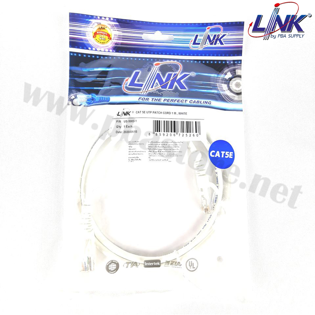 สายแลนแบบสำเร็จรูป Patch Cord CAT5e 1M /Cable WHITE ยี่ห้อLINK รุ่นUS-5003LZ-1