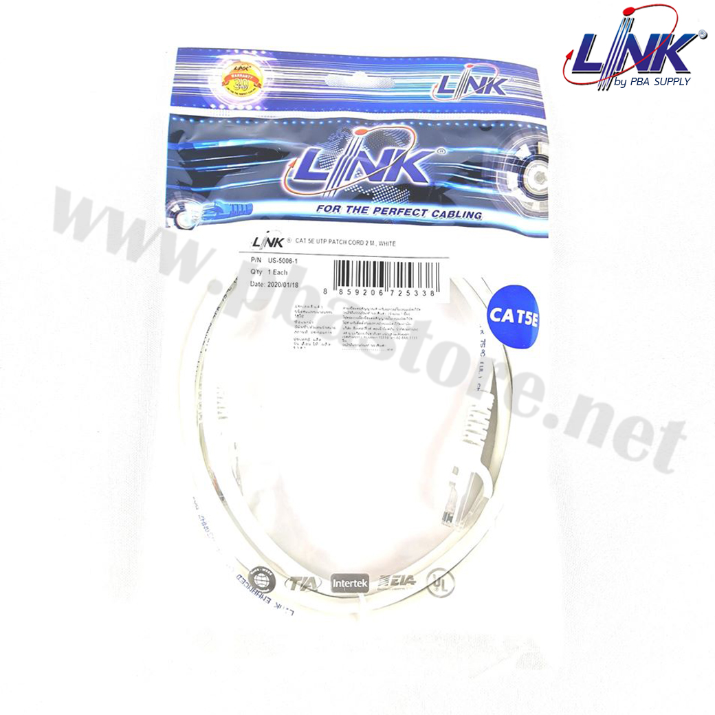 สายแลนแบบสำเร็จรูป Patch Cord CAT5e 2M /Cable WHITE ยี่ห้อLINK รุ่นUS-5006LZ-1