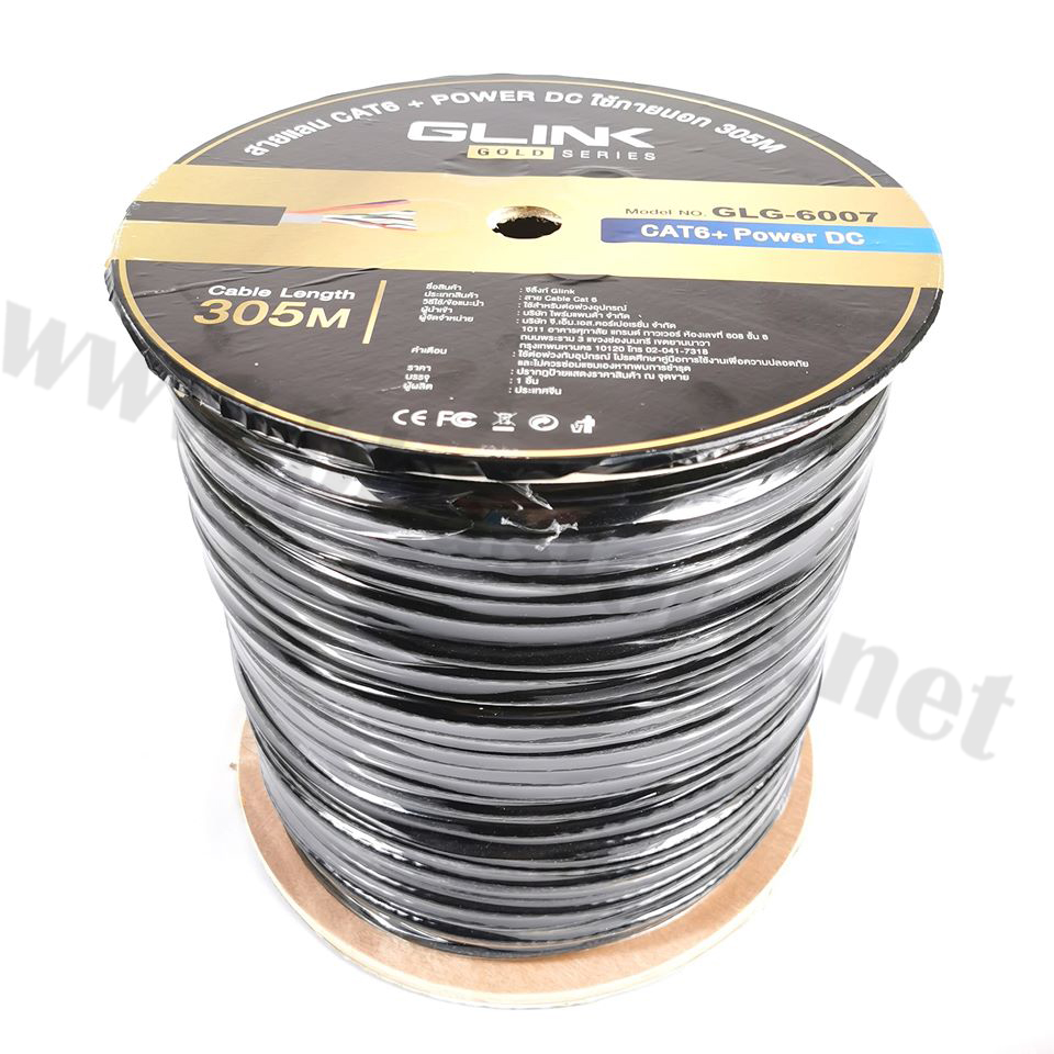 สายแลน Cat6 Outdoor +Power 305M Gold Series ทองแดงแท้80% Glink รุ่น GLG-6007 ใช้สำหรับเชื่อมต่อระบบเครือข่ายแบบสาย (LAN) สำหรับใช้ภายนอก OUTDOOR