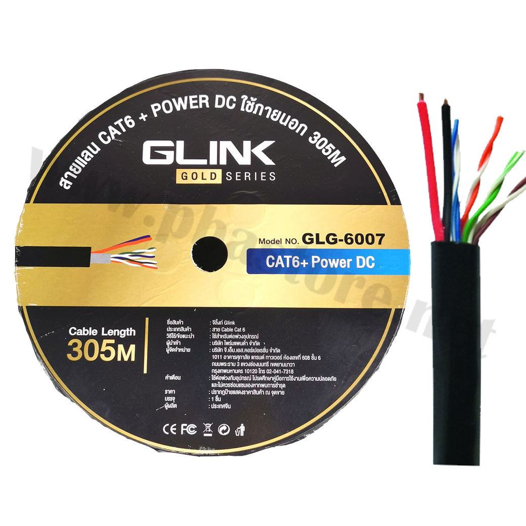 สายแลน Cat6 Outdoor +Power 305M Gold Series ทองแดงแท้80% Glink รุ่น GLG-6007 ใช้สำหรับเชื่อมต่อระบบเครือข่ายแบบสาย (LAN) สำหรับใช้ภายนอก OUTDOOR ราคา 2,520.00 .-