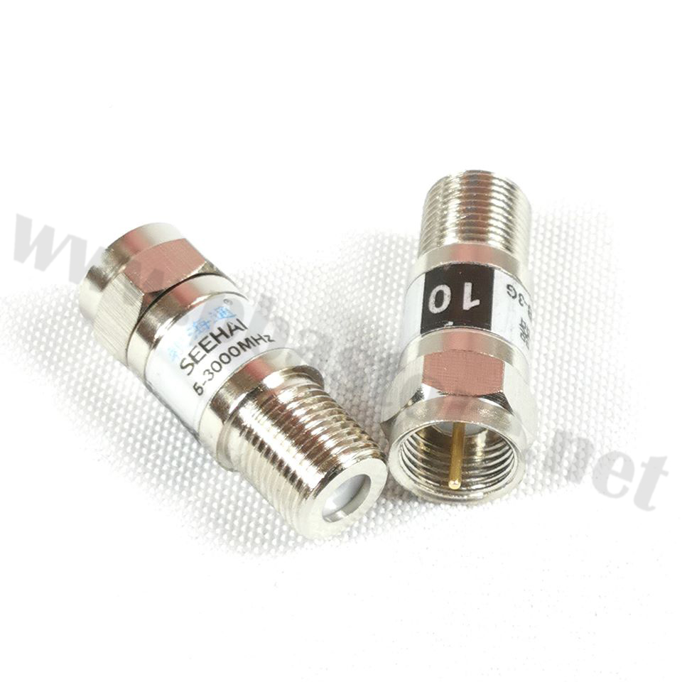 ตัวลดทอนสัญญาณเคเบิลทีวี Inline Coax SSJ-10db-3G(ผู้/เมีย) แบนด์วิดท์ 5-3000 MHz ราคา 100.00 .-