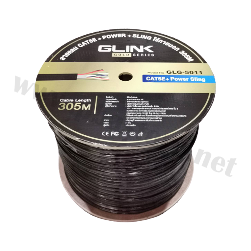 สาย LAN CAT5e+DC (สายไฟ) +M (สลิง) ความยาว 305 เมตร Glink รุ่น GLG-5011 Gold Series ใช้เชื่อมต่อระบบแบบสาย (LAN) สำหรับใช้ภายนอก ทนแดด ทนฝน