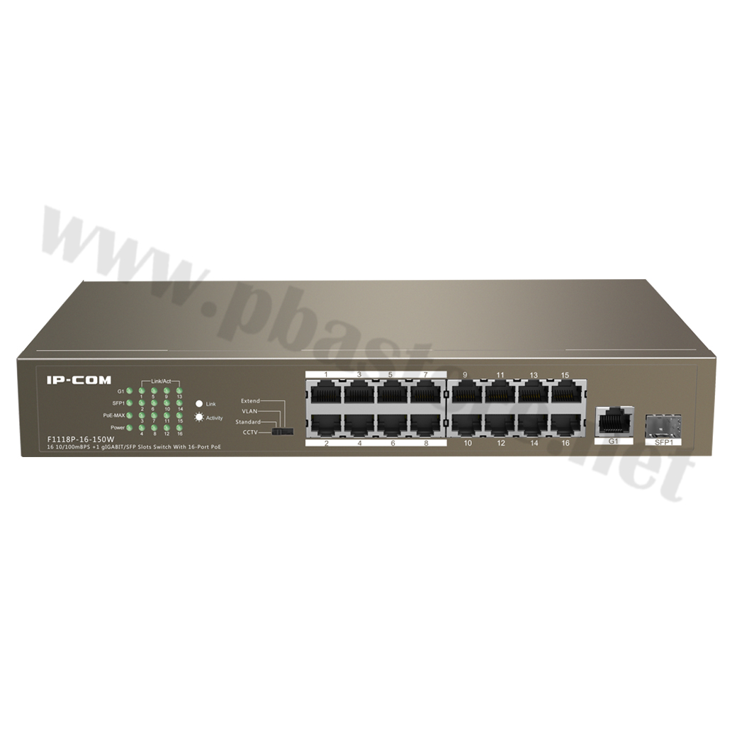 POE Switch 16 Port 16FE+1GE/1SFP Unmanaged Switch With 16-Port PoE IP-COM รุ่น F1118P-16-150W