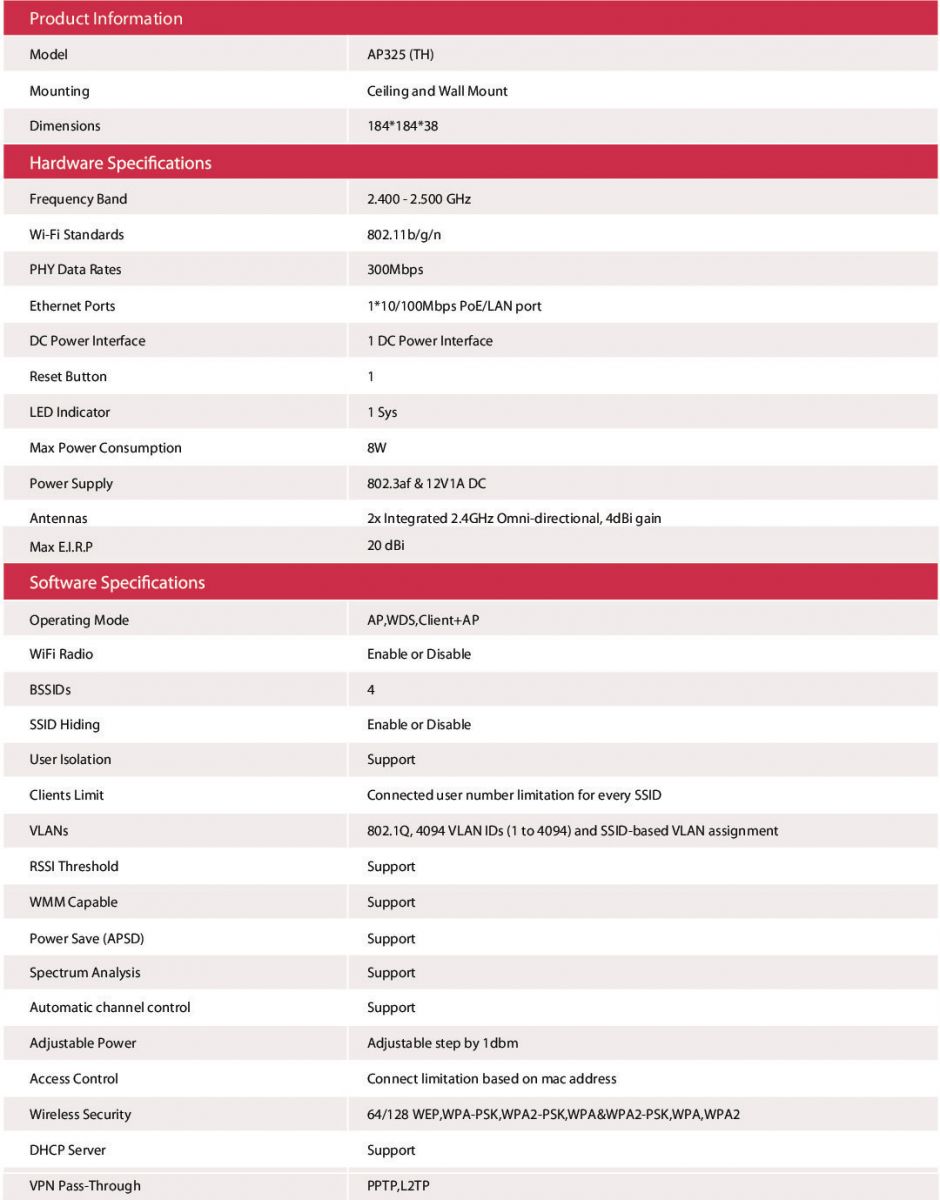 Wireless access point Support 2.4GHz 300Mbps รองรับ POE 802.3af IP-COM รุ่น AP325 ราคา 1,590.00 .-