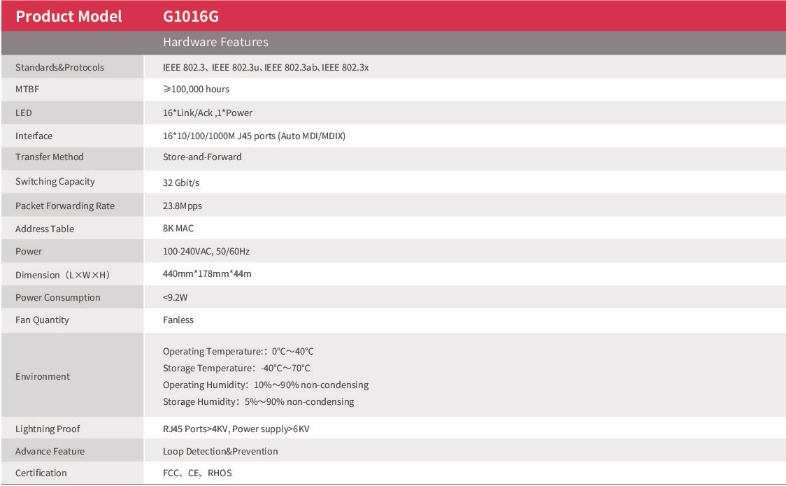 - 16*10/100/1000 Mbps auto-negotiation RJ45 ports