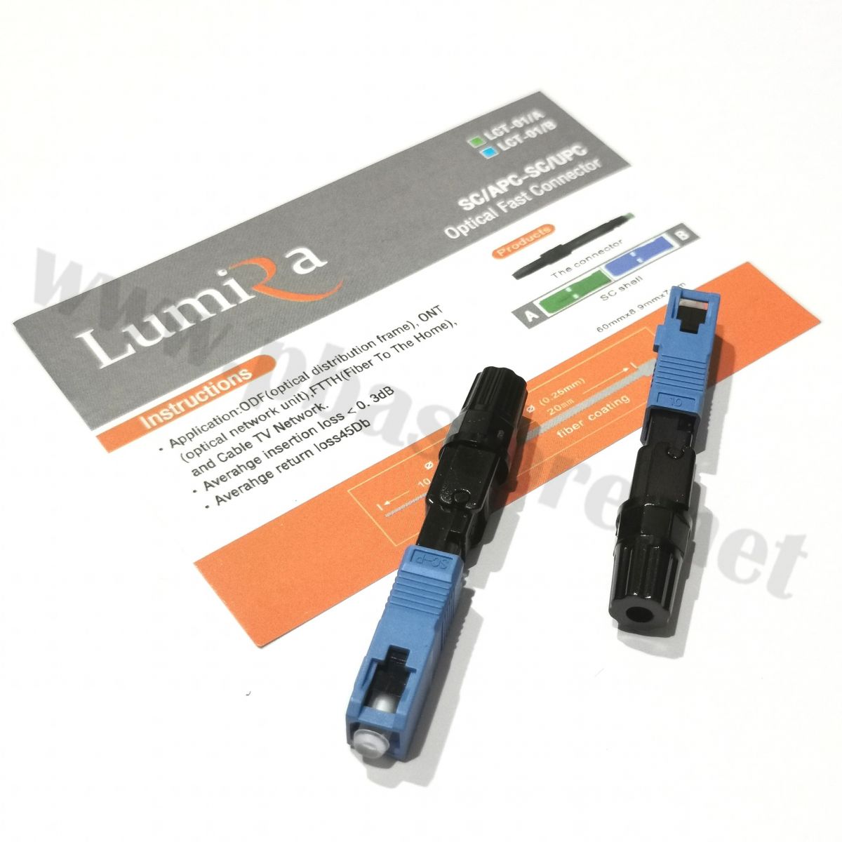 หัวไฟเบอร์ออฟติกแบบ Fast Connector ชนิด SC/UPC (สีฟ้า) เปิดฝา  ยี่ห้อ Lumira รุ่น LCT-01/B แพ็ค 10 หัว ค่าลดทอนสัญญาณอยู่ที่ 0.3dB