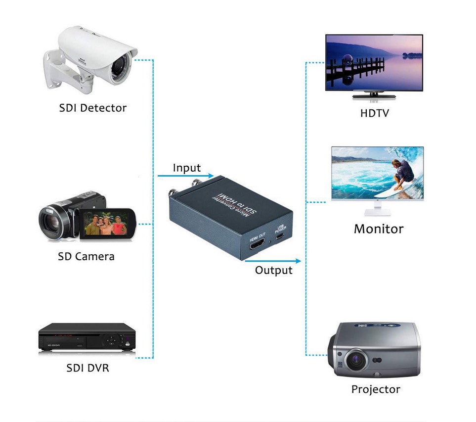 Supports SD and HD Signals:Convert SDI to HDMI and SDI both or seperately, support 1920x1080P@60Hz,1920x1080I@60Hz,1280x720P@60Hz