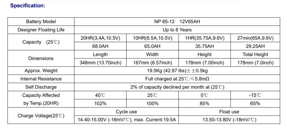 BATTERY MATRIX UPS 65Ah 12V 'NP65-12' รุ่น BT023 เป็นแบตเตอรี่แห้ง สามารถชาร์ตไฟใหม่ได้ เหมาะสำหรับนำไปเปลี่ยน ทดแทนแบตเตอรี่เดิมที่หมดอายุการใช้งานของเครื่องสำรองไฟที่ใช้แบตเตอรี่ขนาดเดียวกัน