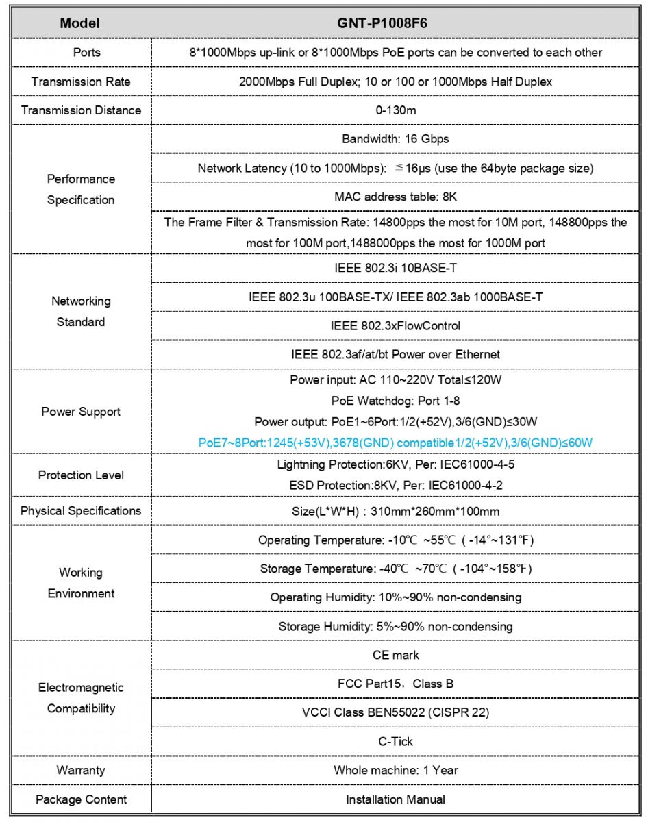 รุ่น : GNT-P1008G6-F (รหัสสินค้า : P00130)