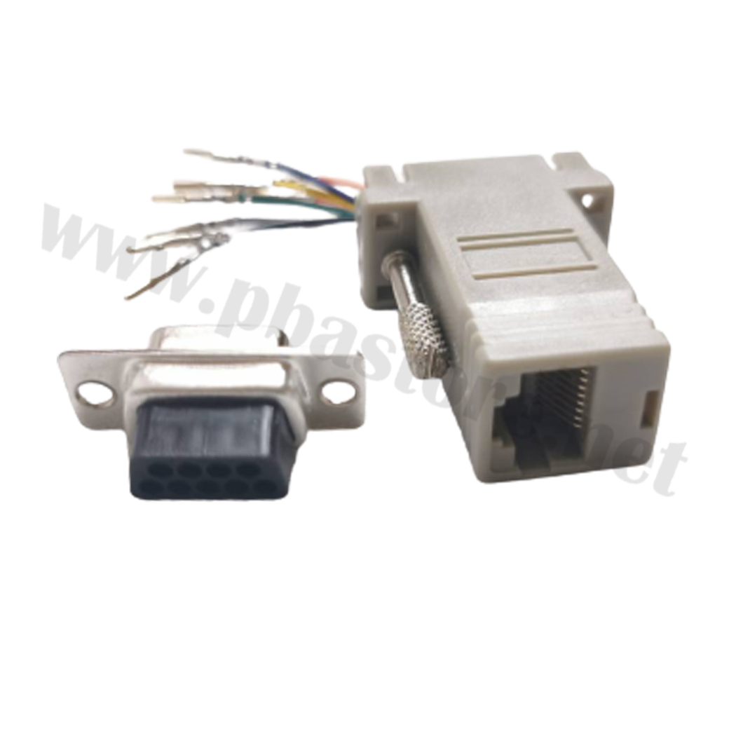 ชุดหัวประกอบ DB9 to RJ45 (เมีย/เมีย) หัว DB9 ตัวเมียหัวบัดกรี พร้อมฝา Cover