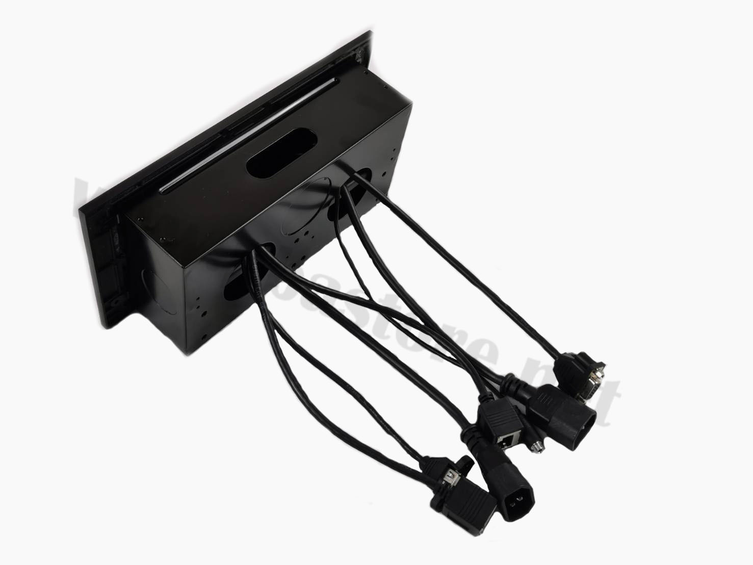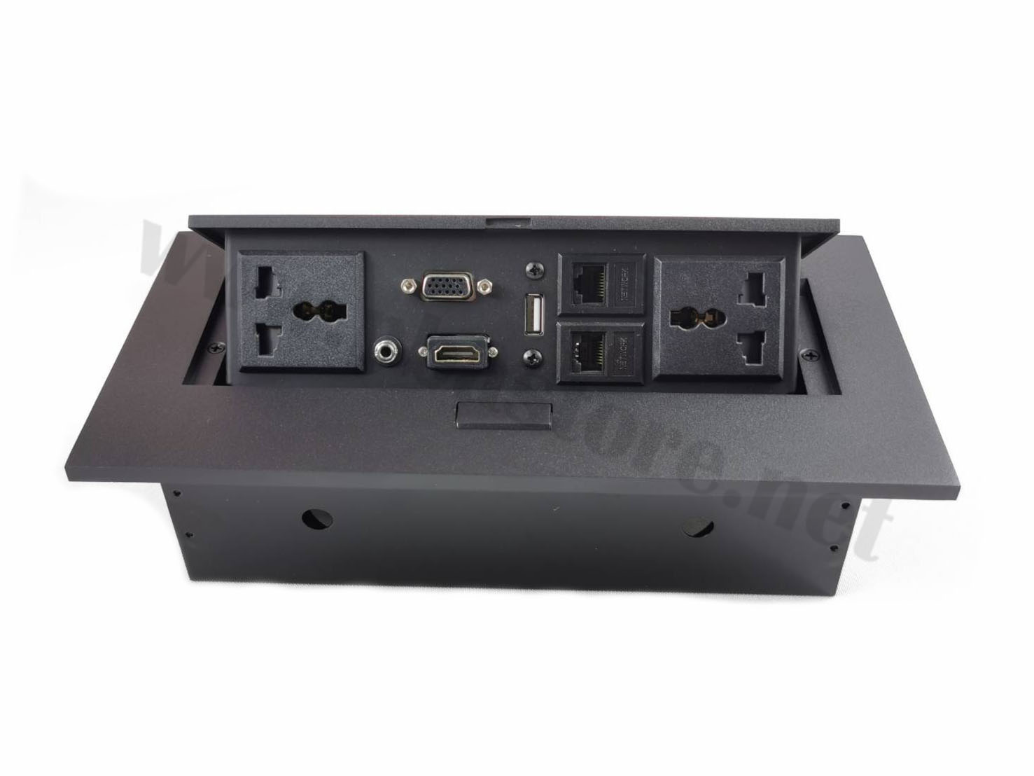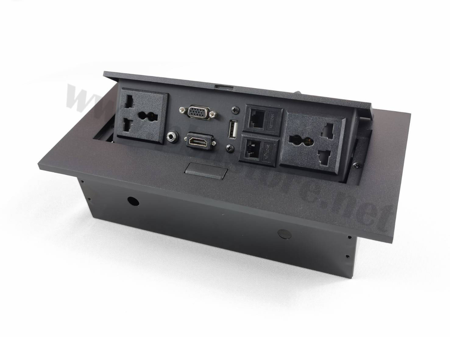 กล่องปลั๊กไฟสำหรับโต๊ะประชุม แบบป๊อปอัพ LAN+HDMI+ปลั๊ก+VGA+AUDIOพร้อมปลั๊กแบบ universal สีดำ ขนาด กว้าง 26.5cm ลึก 13 cm สูง 12 cm
