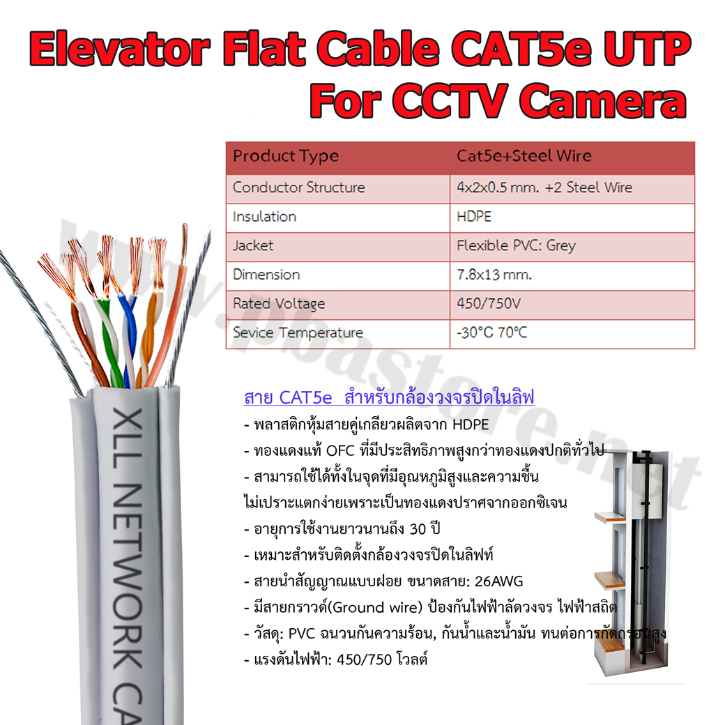 สายแลนสำหรับใช้ในลิฟต์ แบบมีสลิง LAN for Elevator สายแลนมาตรฐาน CAT5E รองรับความเร็ว 10/100 Bandwidth 100Mhz. ราคา 95.00 .-