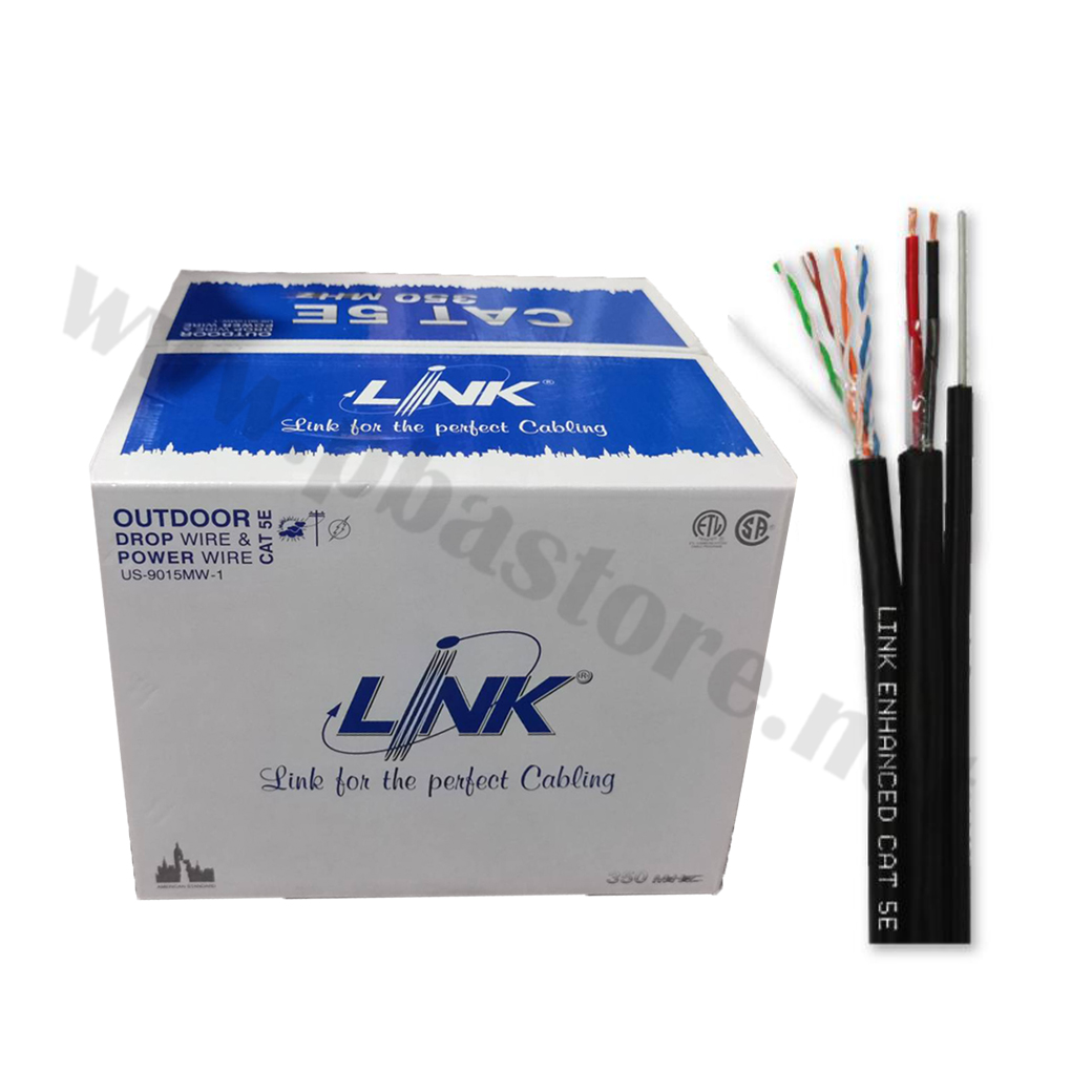 สายแลน CAT5E + ไฟ +สลิง Outdoor 100M INTERLINK รุ่น US-9015MW-1 UTP PE Bandwidth 350MHz ทนต่อสภาพอากาศภายนอก ราคา 2,490.00 .-