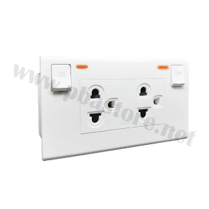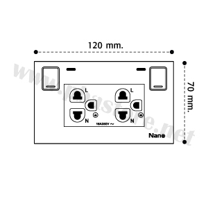 ชุดเต้ารับคู่ มีกราวน์ และม่านนิรภัย พร้อมสวิทซ์ควบคุมมีไฟแจ้ง เปิด-ปิด Switched Socket 16A-250VAC Nano รุ่น SC-SW2P6-W สามารถ รองรับแรงดันไฟฟ้า ได้สูงสุดถึง 16A 250V