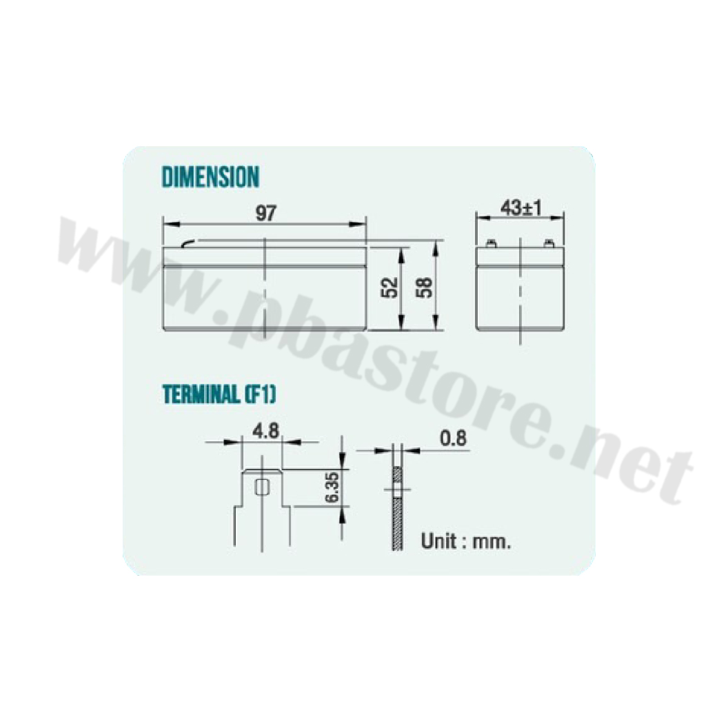Rated Capacity : 1.3AH / 20HR