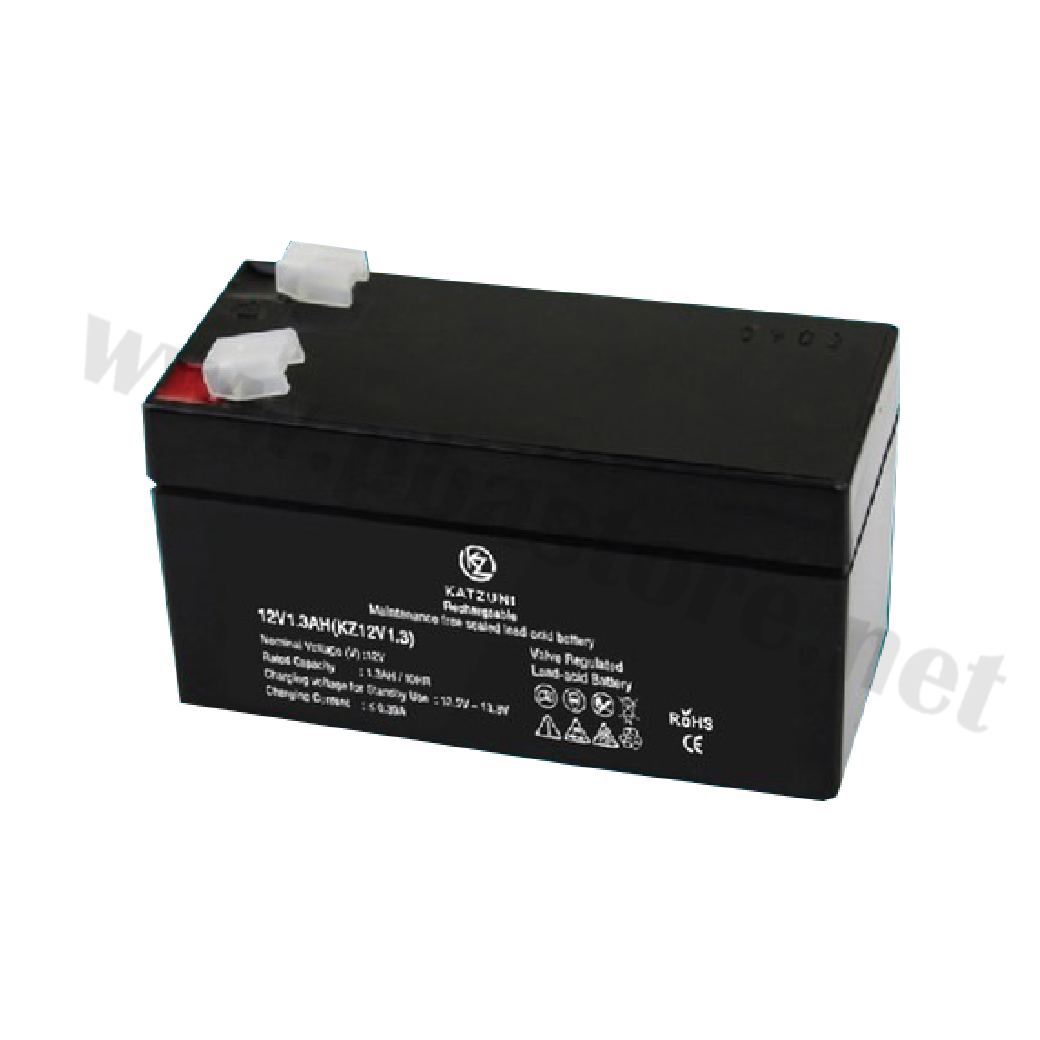 แบตเตอรี่ 12V 1.3AH KATZUNI รุ่น KZ12V1.3AH คืออุปกรณ์กักเก็บพลังงานไฟฟ้า แบตเตอรี่แห้ง นำมาชาร์จไฟใหม่ได้ ไม่ต้องเติมน้ำกลั่น